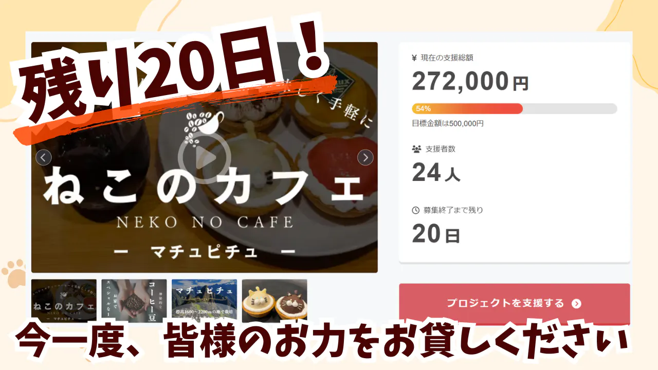 猫達のご縁をつなぐ場所を守り、大人猫の魅力をもっと多くの方に伝え続けるためにもなんとしても成功させたいです!