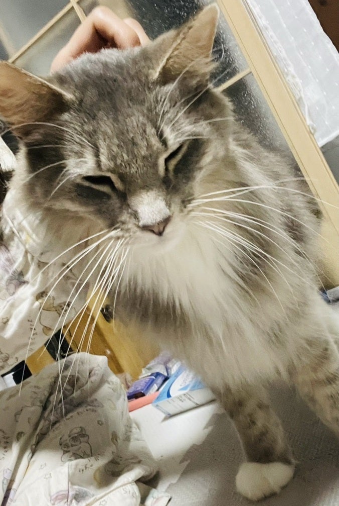 この子は、元々の飼い主であったお婆さんが入院することになり息子が保健所に連れてくと知り合いのお家に引き取られた猫ちゃんです。