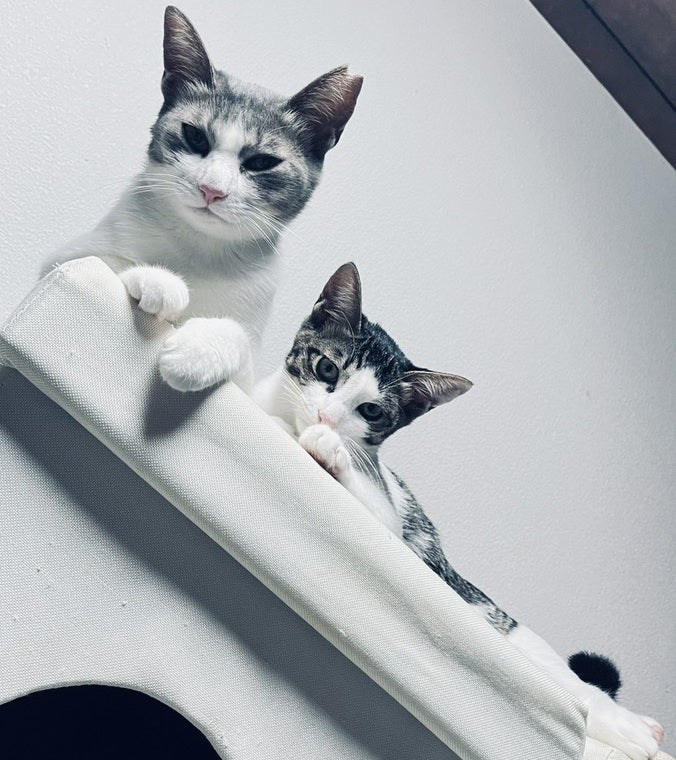 ママだけ人馴れしているからとバラバラに譲渡されようとしていたのですが、あまりにも仲が良かったので、どうしても離す事ができず2頭一緒にで我が家で引き取りました。