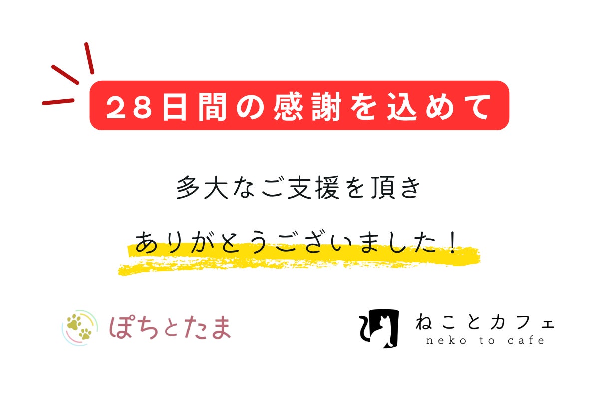 猫たちが安全で、心穏やかに過ごせるようこれからも精一杯努めてまいります。〈リターン品の発送について〉ご支援いただいたリターン品につきましては、現在、心を込めて準備を進めております。