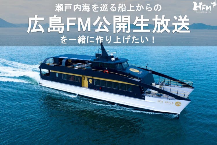 今回はラジオ局 広島FMと、今回の企画で船=シースピカを出してくださる瀬戸内海汽船さんの共同プロジェクトチームとしてクラウンドファンディングに挑戦します!