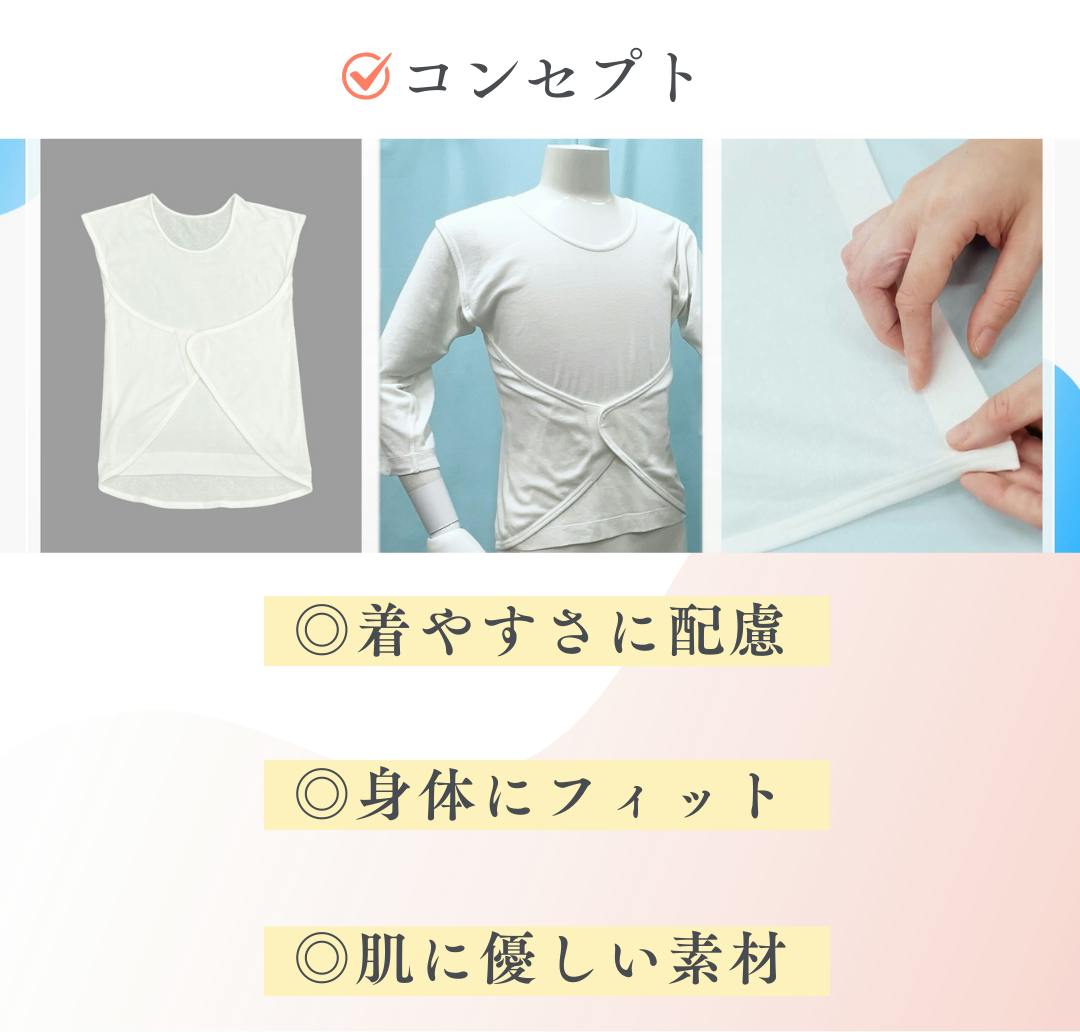 2025/12/18 10:20介護現場で日々直面している、拘縮のある方の更衣介助。無理な動きでご本人に痛みが出てしまったり、複数人での介助が必要になったり。「肌着一枚の着脱」に、想像以上の時間と労力がかかる。そんな経験はありませんか?介護の現場で生まれた「リアルな声」からヒントを得て開発された新しい肌着が、「ニーズシーズマッチング交流会(12/18〜20)」にて実物をご確認いただけます!・アームホールレス(袖穴なし)・着せやすく、脱がせやすい・背中にしわが寄りにくい設計・肌に優しい綿100%・七分袖、一分袖をご用意2025年H.C.R.(国際福祉機器展)では、全国の介護・福祉職の皆さまにご覧いただき、「こういう肌着を待っていた」「すぐに現場で使いたい」と、多くの反響をいただきました。実物をご確認いただけます!「これは現場の介護者・ご利用者にとって本当に使えるのか?」ぜひ、会場で実物をお手に取ってお確かめください。出展イベント情報:ニーズシーズマッチング交流会(福祉機器の展示会)開催日:2025年12月18日(木)〜20日(土)会場:東京都立産業貿易センター浜松町館(3階展示室)詳細:https://www.techno-aids.or.jp/2025koryukai/web/hall/cms/現場の困りごとに寄り添うユニバーサル肌着、“着る”ことに悩まなくていい、そんな日常を一緒につくりませんか?会場でお待ちしております! もっと見るうきま幸朋苑様にて介護肌着をお試しいただきました!