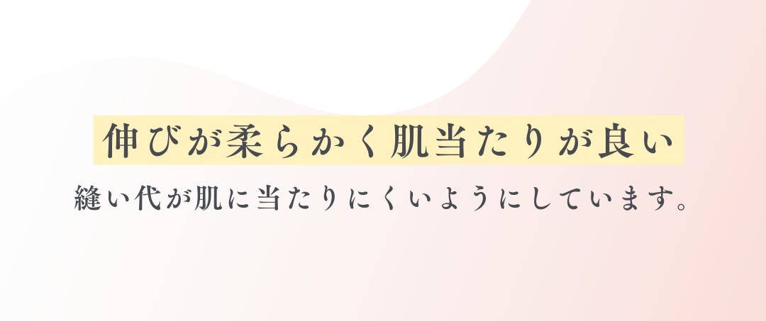 肌当たりの優しい綿100%。伸びが柔らかく肌が弱い方・敏感肌の方にも最適です。縫い目や縫い代は出来る限り肌にあたらないように設計しました。