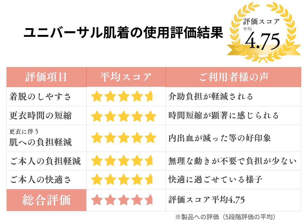 要介護4・5の方や拘縮のある方にとって、「着替えやすく、肌を傷つけにくい肌着」がどれほど求められているかを、現場の声から明確にしたく、実際の介護現場でお試しいただきました。