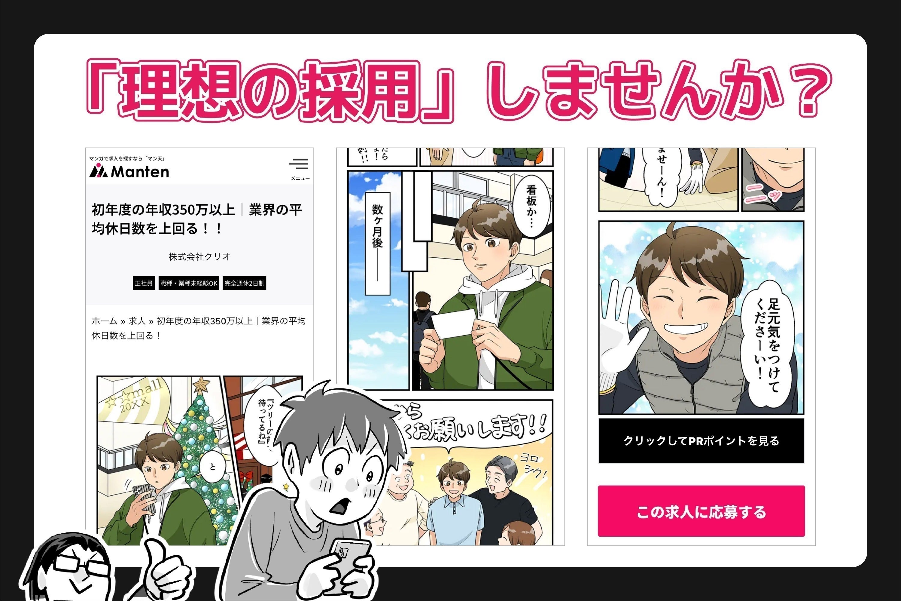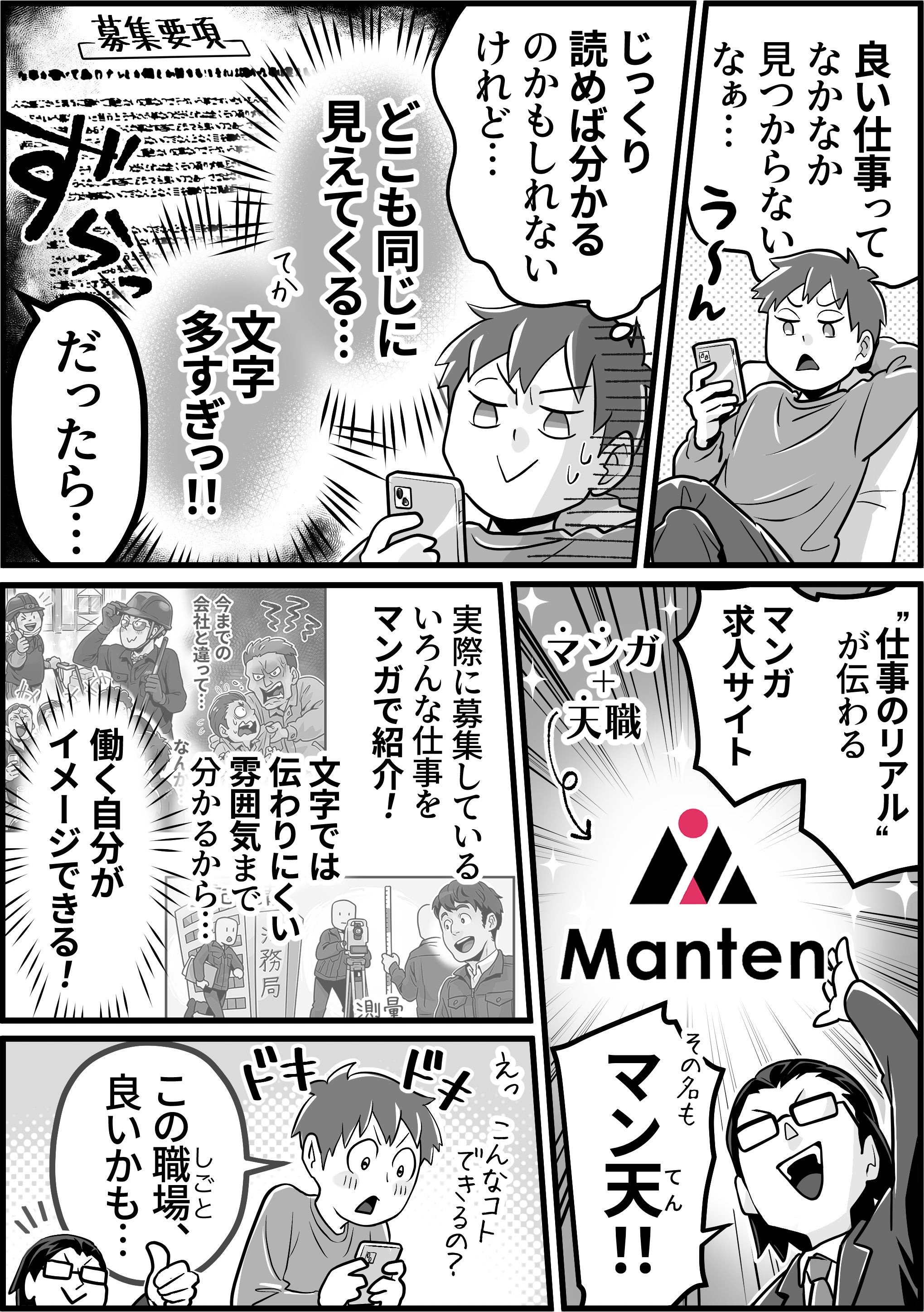 『マン天(Manten)』は、求人情報をマンガで伝えるWebポータルサイトです。