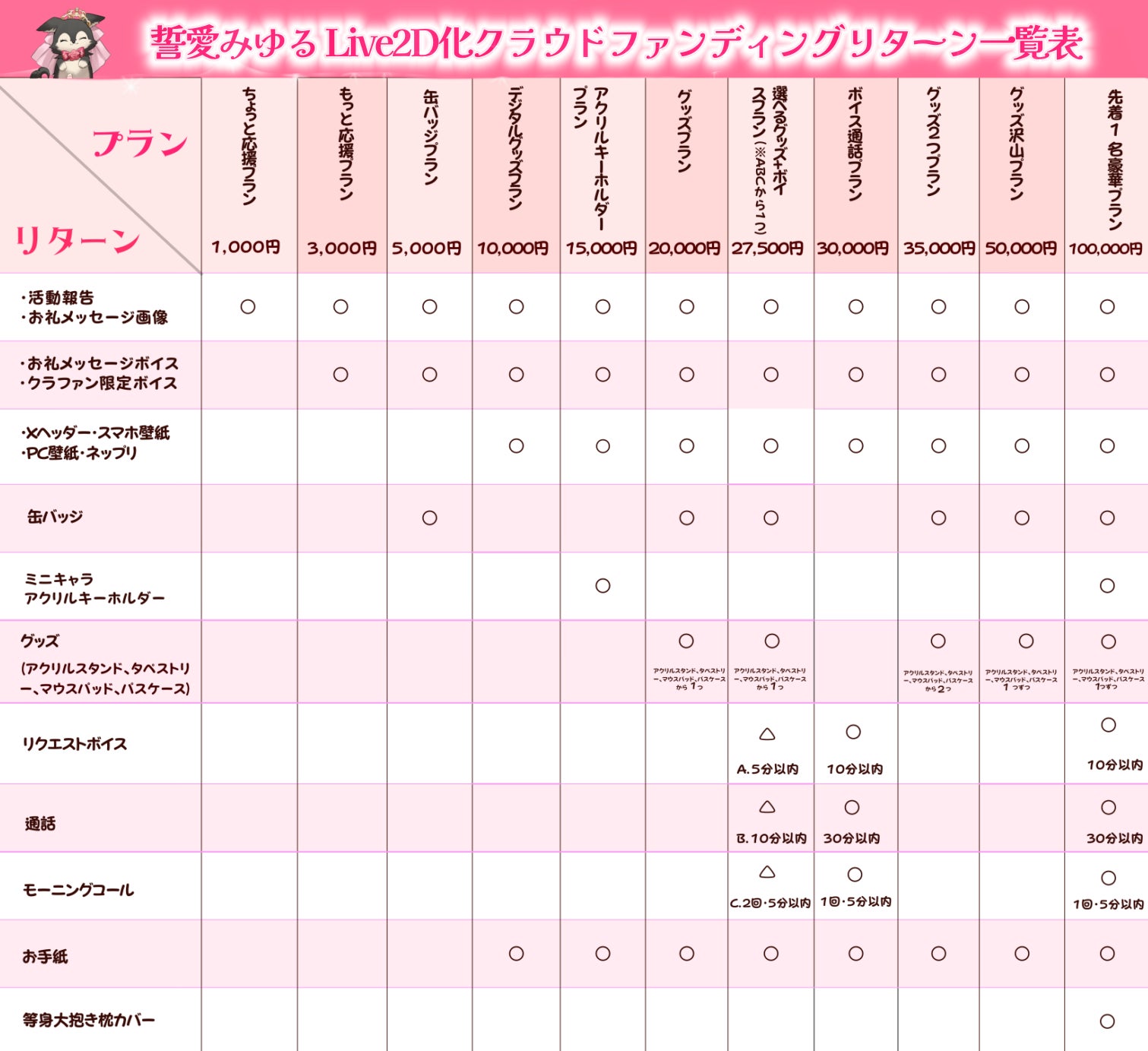 いくつかのプランがあり、それぞれリターンのお返しが異なります🐰