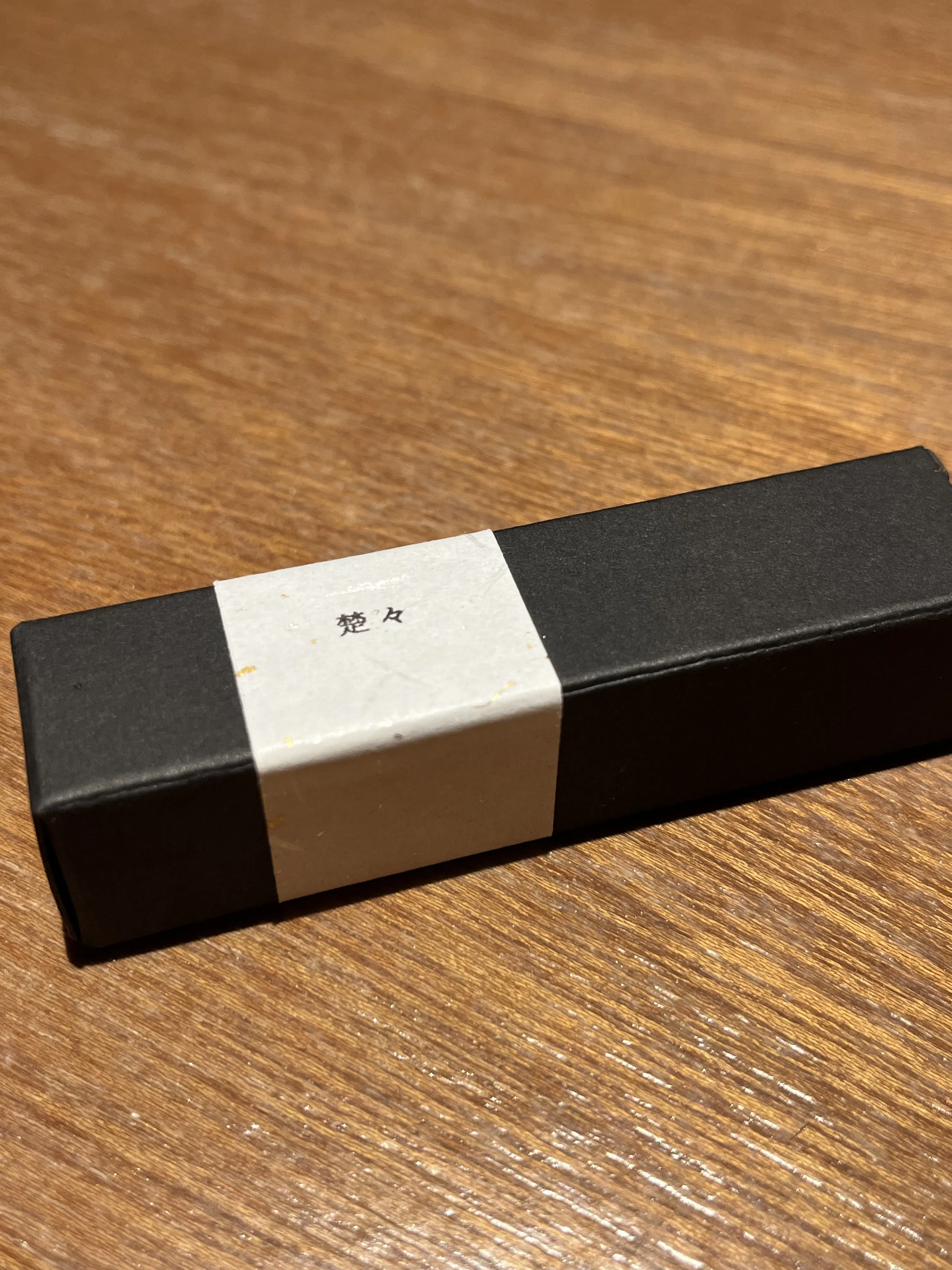 2025/09/12 19:07オリジナルお香の最終試作と、パッケージが完成しました。試作第二弾の中から選んだ「没薬(ミルラ)、松、白檀、ユーカリ」。その香りの配合を微調整して2パターンの試作を作りました。この中から選んだ1つで完成品を作って行きます。パッケージは、黒いツヤなしのシンプルな箱に、金粉の混ざった和紙のシールでラベルを作りました。いよいよ完成まであと一歩。皆さま楽しみにお待ち下さい。 もっと見る