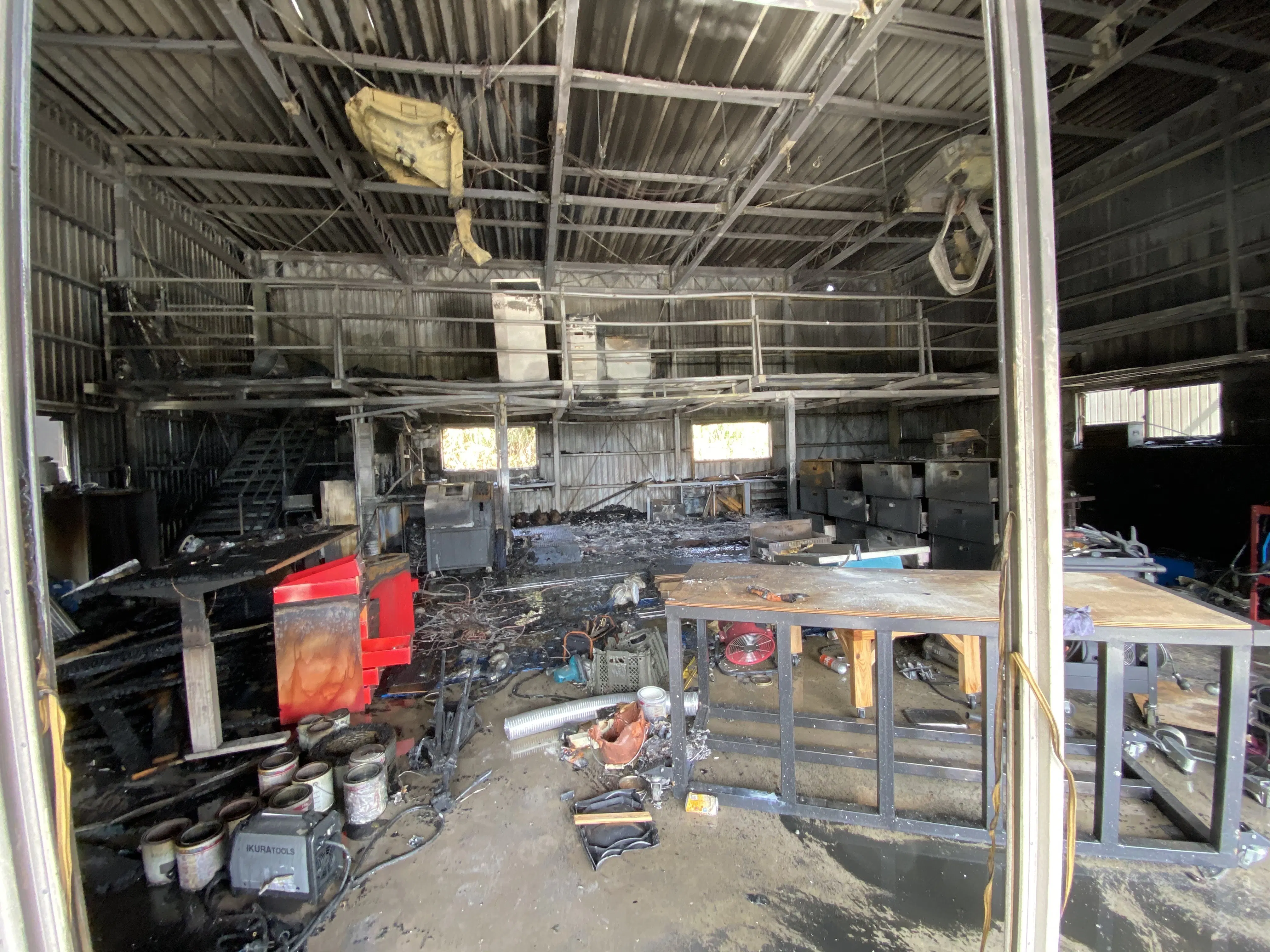 資材、工具類と建物は全焼しましたが、幸い飼っている猫や私たちにケガはありませんでした。