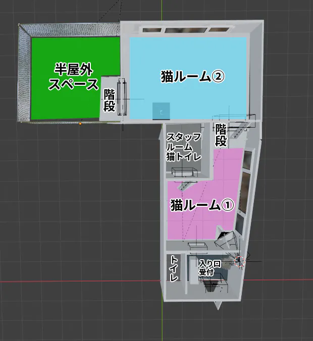 屋外の施設は5㎡程度と広くなり、外の景色やその季節感を肌で感じることはもちろん、たくさんの猫が行き来しても窮屈にはならない空間を考えてます。