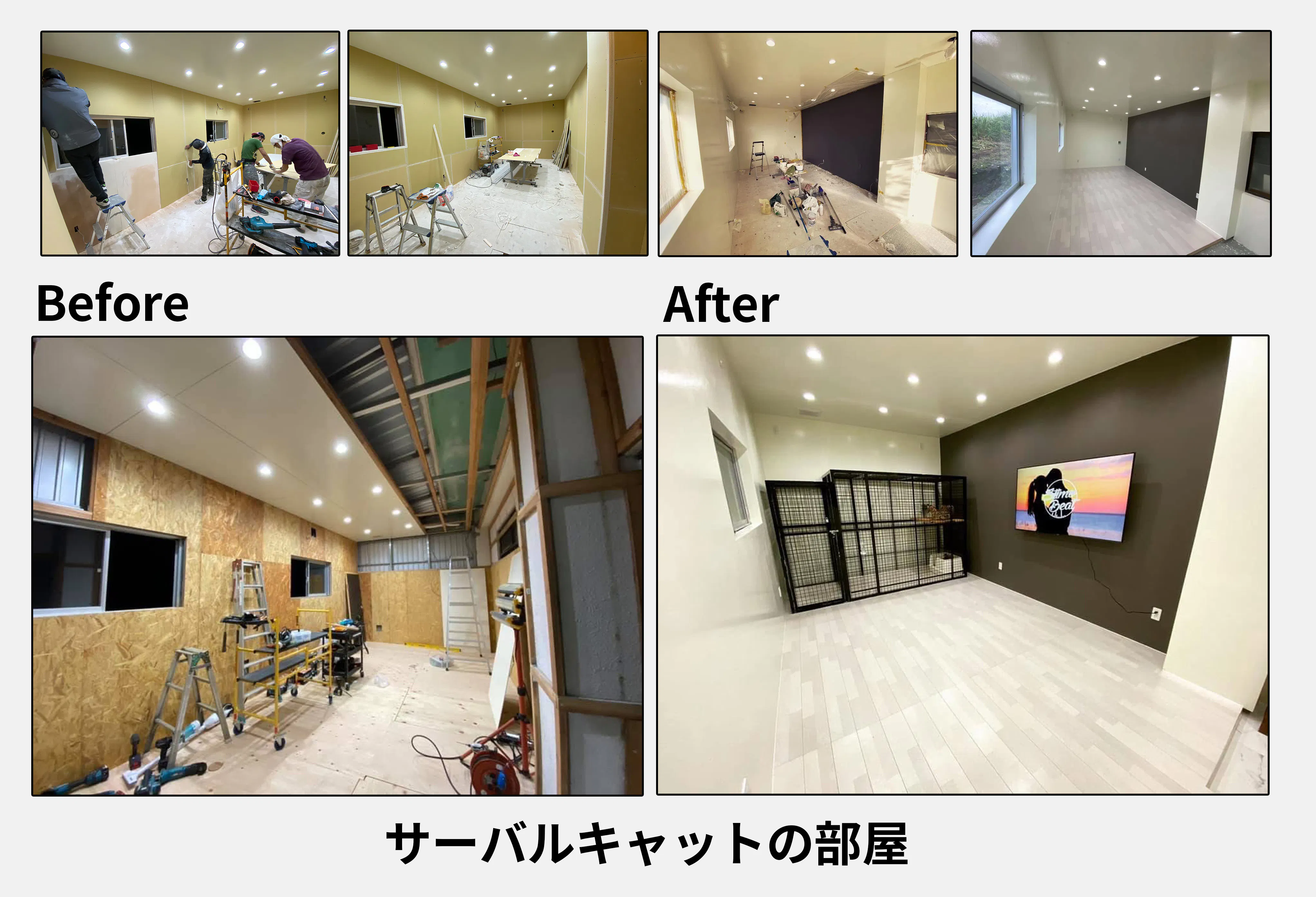 当時の私たちはどこからの再建支援も受けずに、自分たちが約束した責任の為にとにかくがむしゃらに向き合いました。ゼロから施設を建設し、彼らが安心して暮らせる環境を整えることは決して容易ではありませんでしたが、無事サーバルキャットを迎え入れてしっかりと飼育し、2022年11月にはサーバルキャットに会えるカフェ「cafe Surin(カフェスリン)」をオープンすることができました。そして今、彼らはお店のアイドルとして、多くのお客様に愛されています。