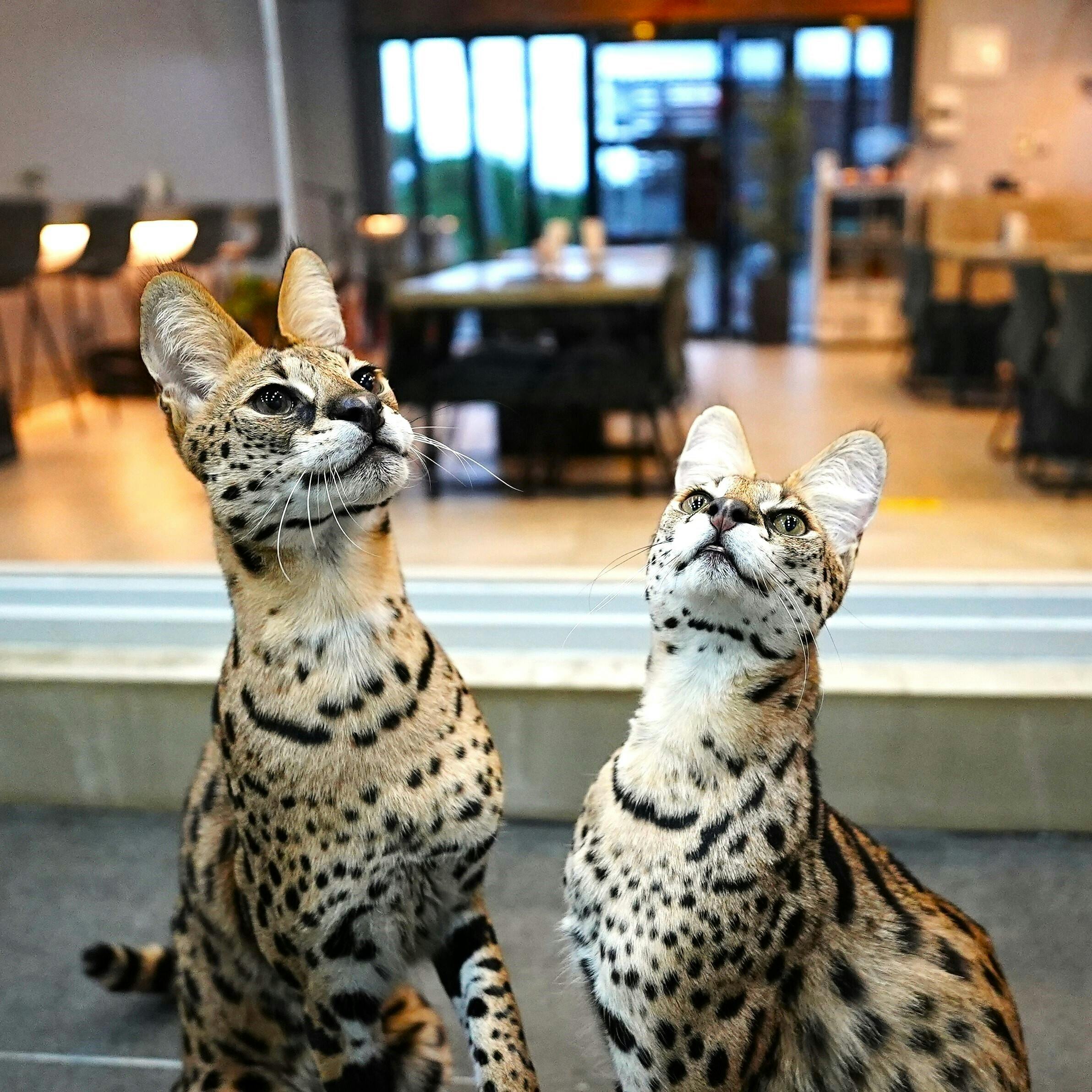 実は、私たちのカフェには2頭の特別な「保護猫」がいます。それはサーバルキャットです。