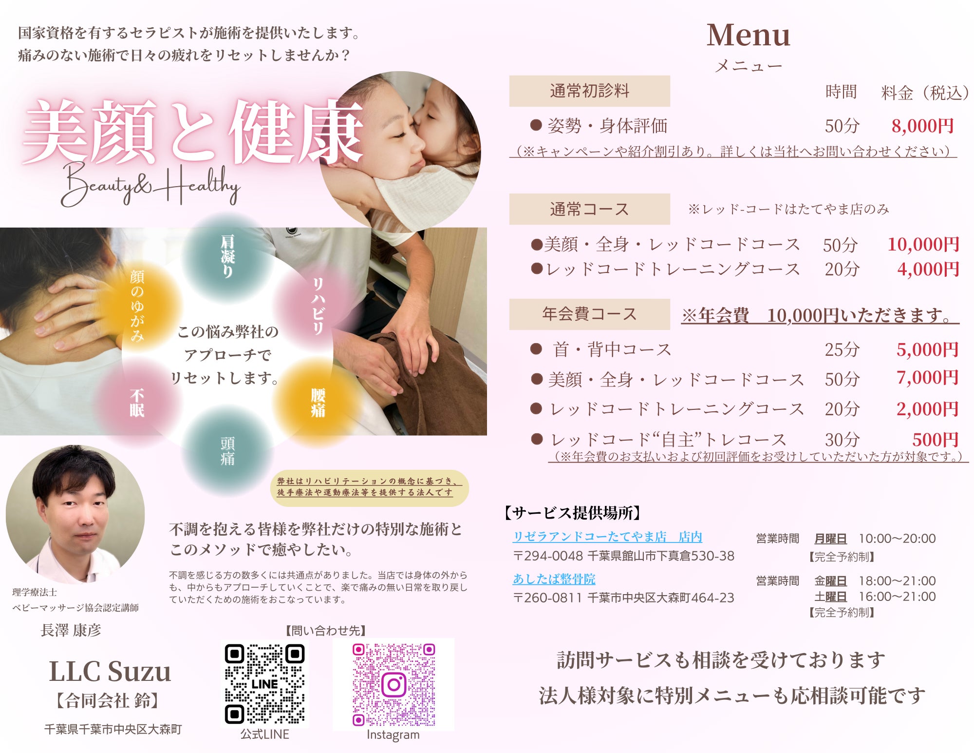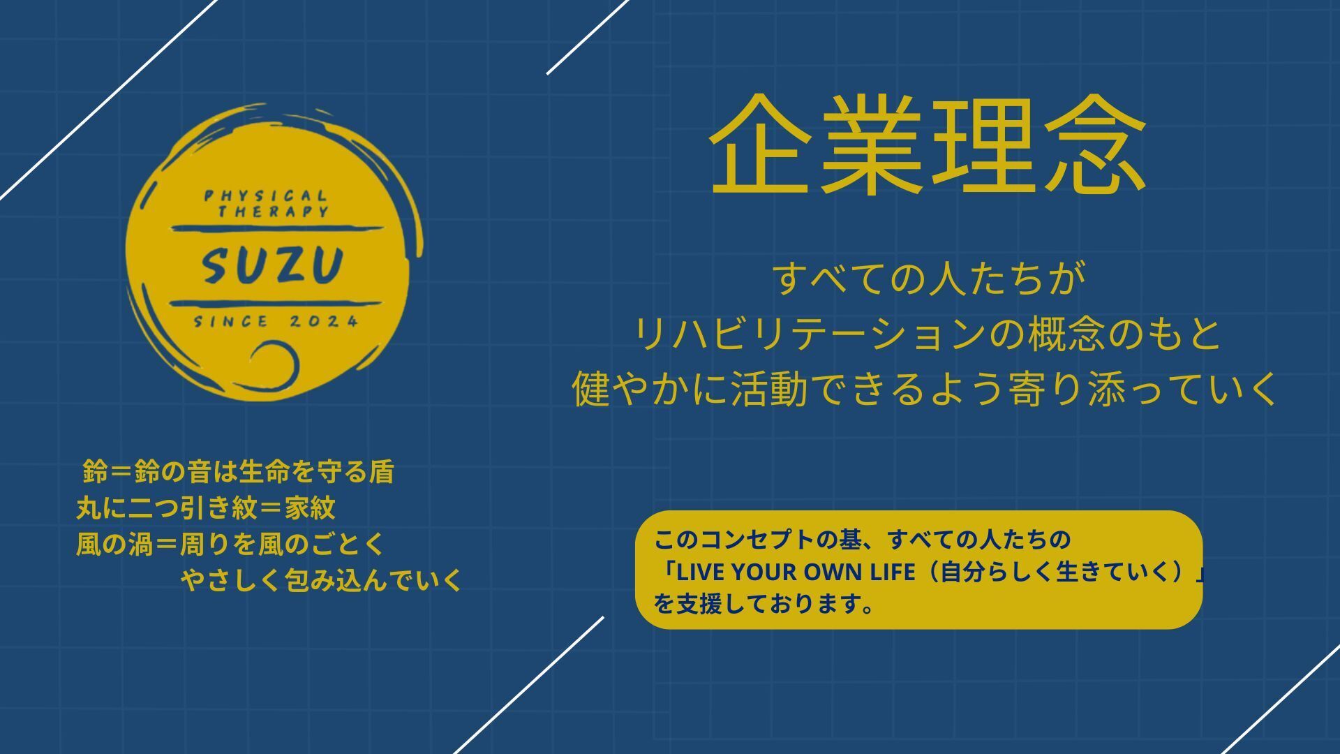 「合同会社 鈴」は、2024年8月28日に創設いたしました企業です。弊社の創設者 長澤 康彦(理学療法士)は、医療・介護業界に15年間従事してまいりましたが、医療介護事業は診療報酬の中でしか事業を行うことができず、期限や制限があり、その患者さんにとって本当は必要なサービスであっても、導入することができないことがしばしありました。それにより、能力低下が起きてしまったり、ケガの予防を行えず障害を負った場面をよく見ていました。そんな状況を良くしたく、理学療法士としてできることを支援したく起業したのがはじまりです。