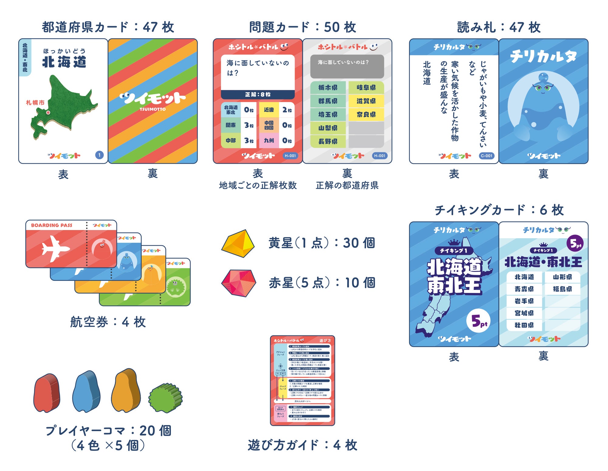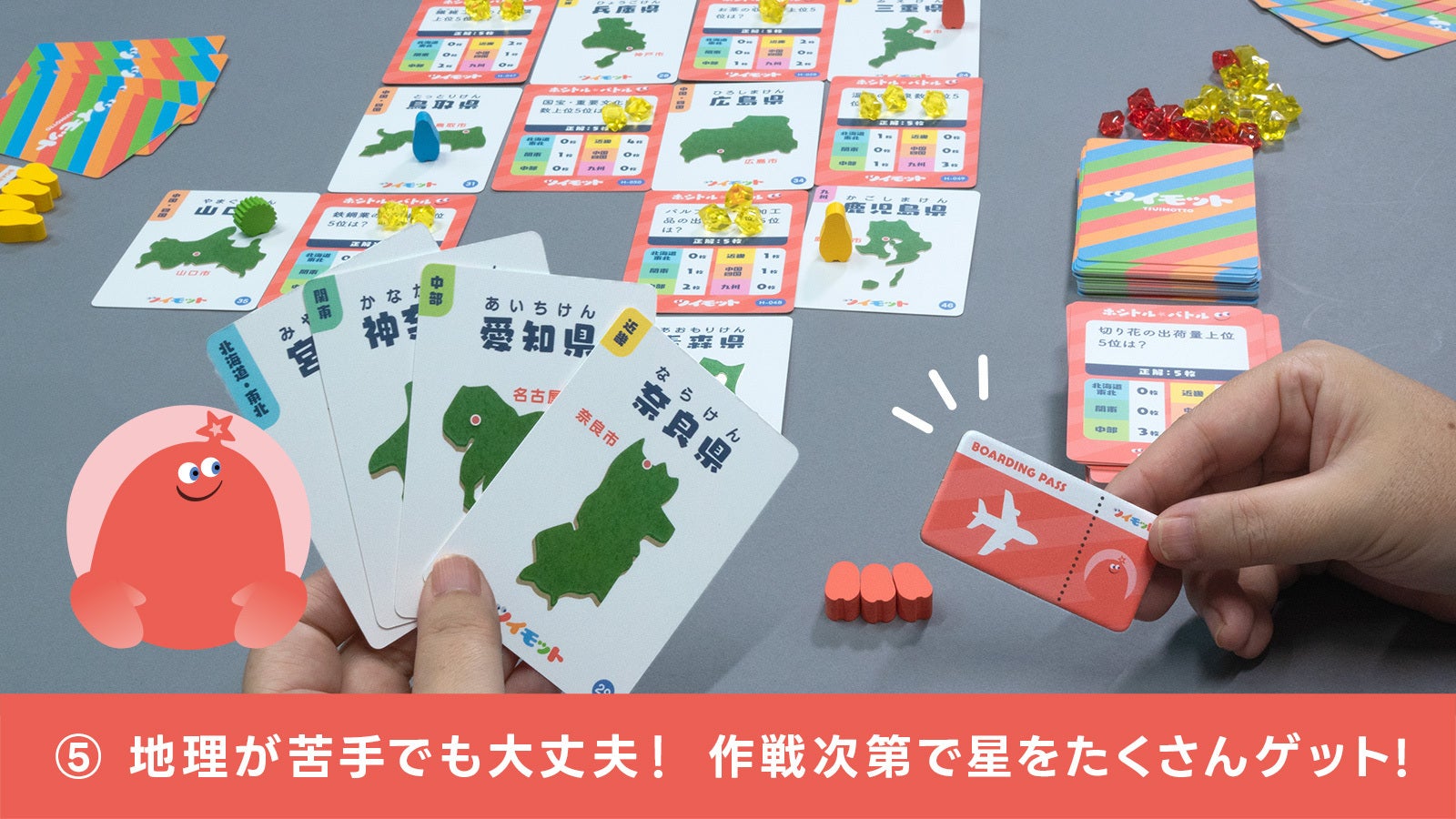 ・問題カードには各府省等が公表している統計データを反映。産業、農業、文化、地形などの各都道府県のリアルな情報を総合的に学べます。