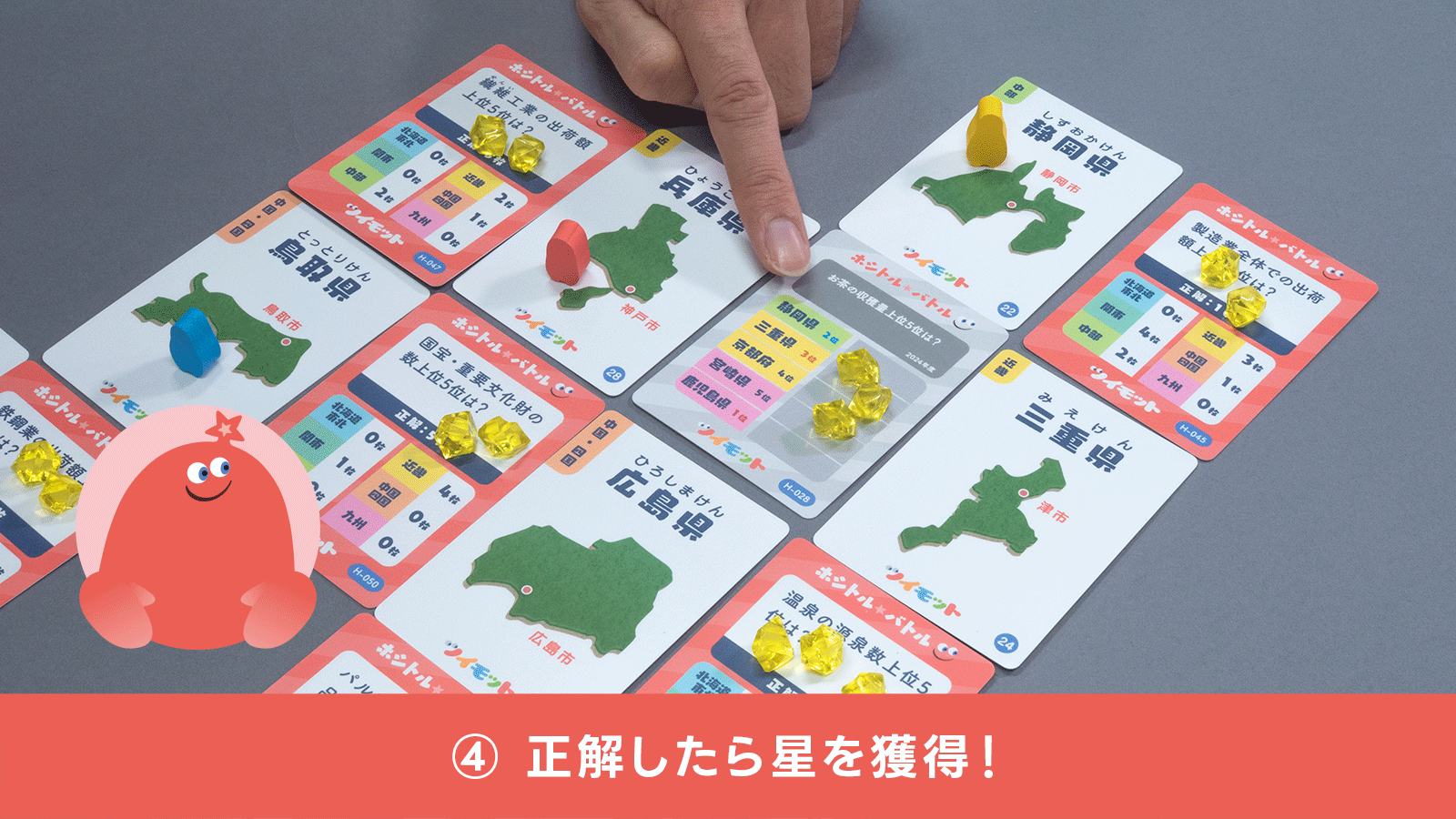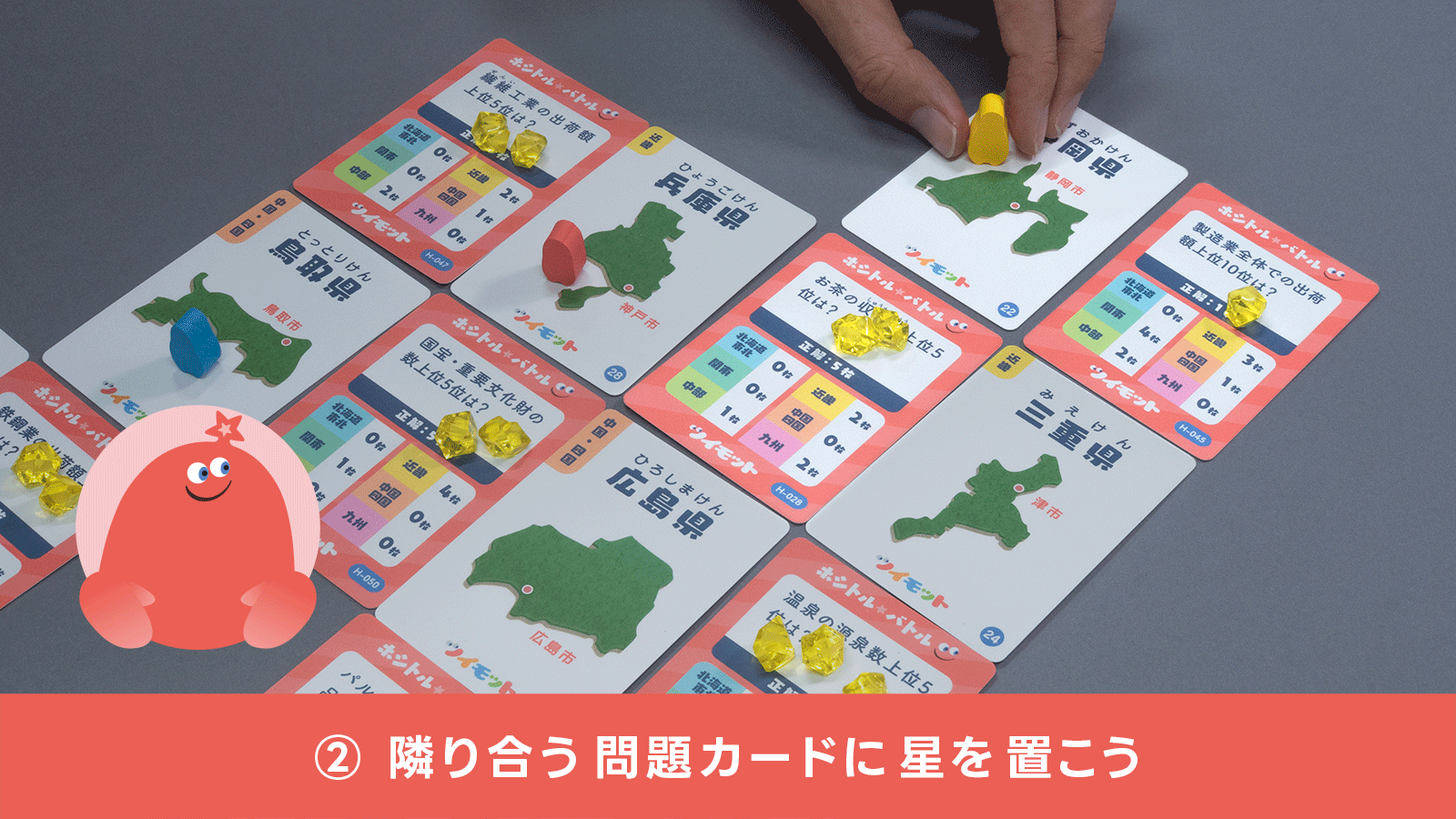 問題カードに合う都道府県カードを出せたら星をゲット!