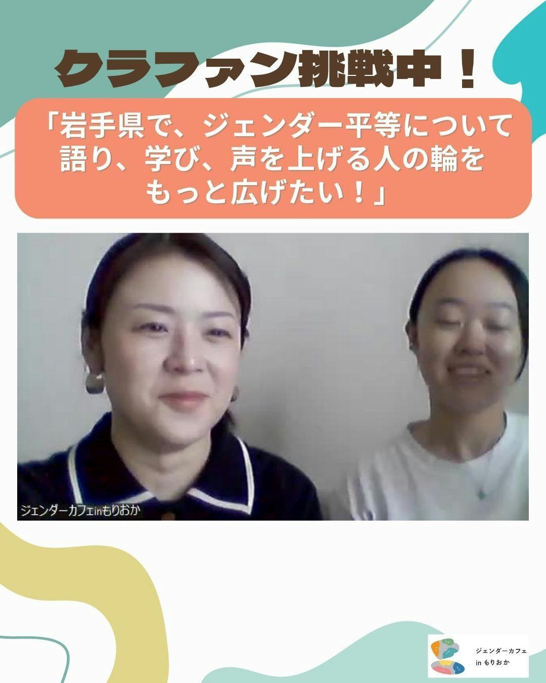 クラウドファンディング「岩手県で、ジェンダー平等について語り、学び、声を上げる人の輪をもっと広げたい!」は残り1週間となりました。