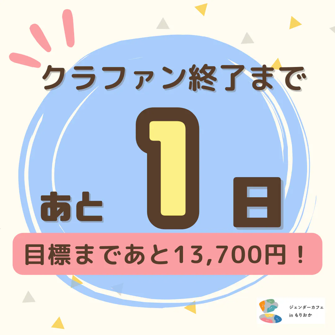 クラウドファンディング「岩手県で、ジェンダー平等について語り、学び、声を上げる人の輪をもっと広げたい!」は、ついに終了まであと1日となりました。
