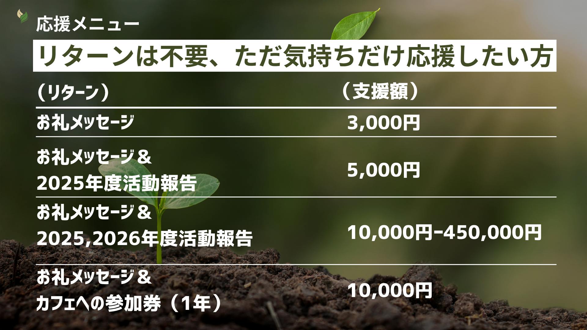 あなたの応援が、誰かの人生を支える力になります。