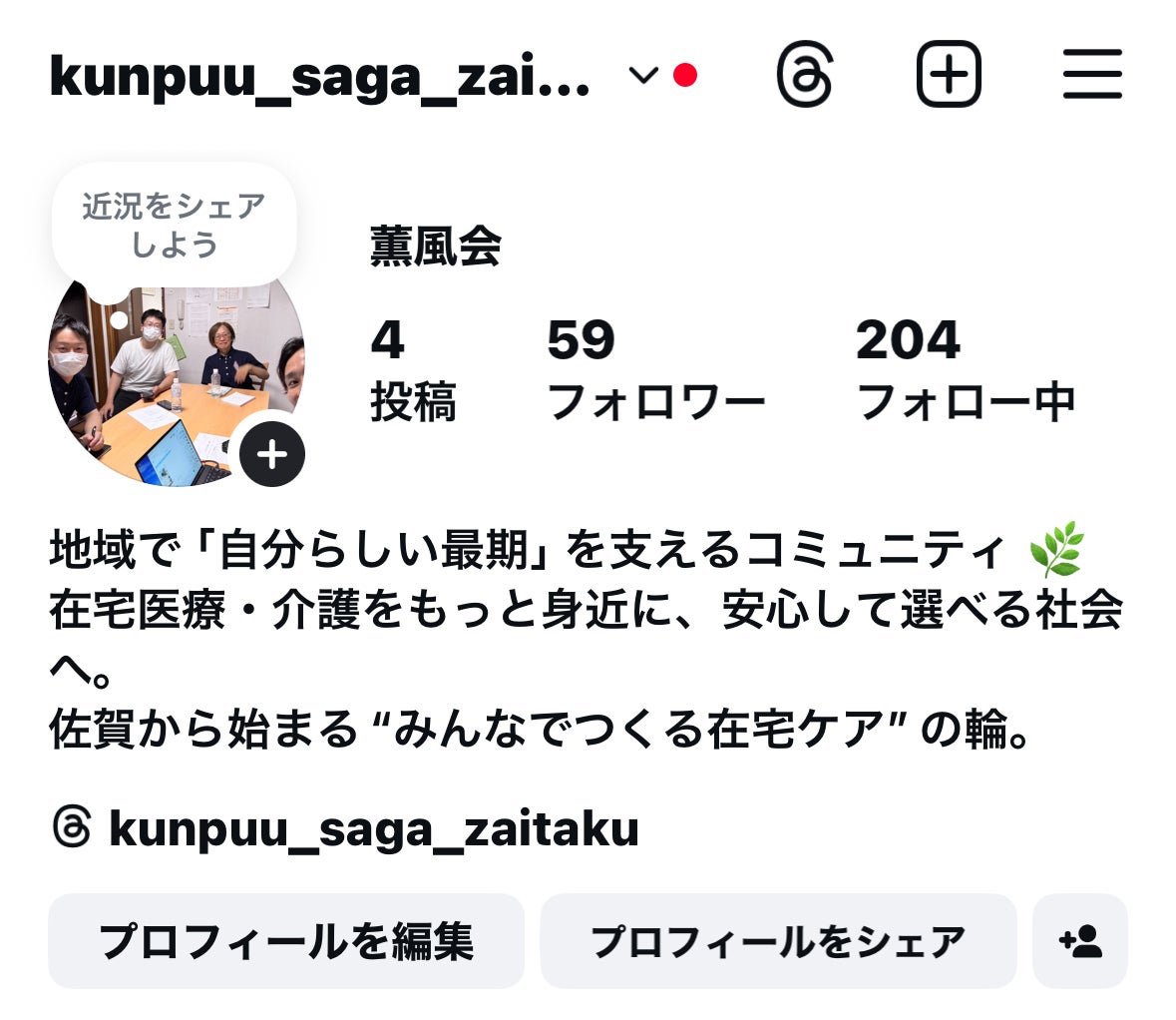 この想いを広げるため、仲間と薫風会を立ち上げ、地域に「自分らしく生き、自分らしく逝く」文化を育んでいます。