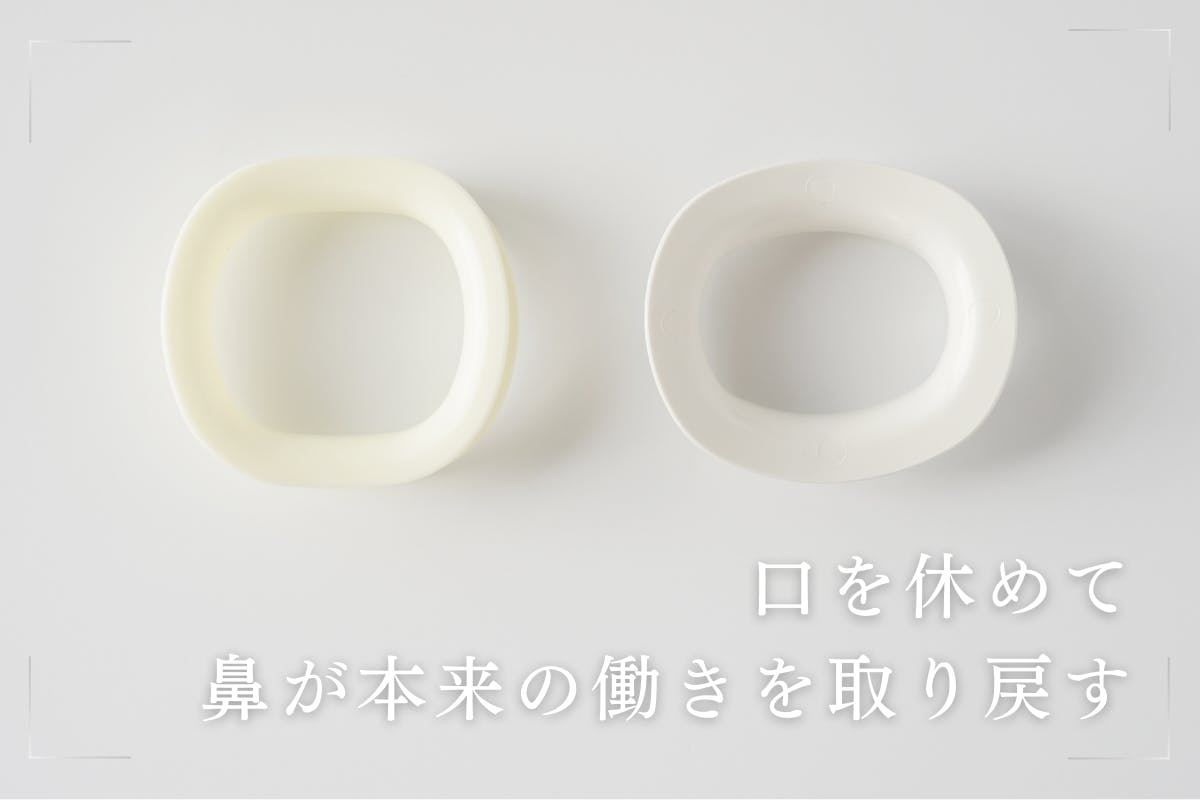 A:鼻呼吸リップピースは医療機器ではなく、口呼吸対策のフォーム(舌位・顎の力み・微呼気など)を確認しやすくする練習用ツールです(個人差あり)。