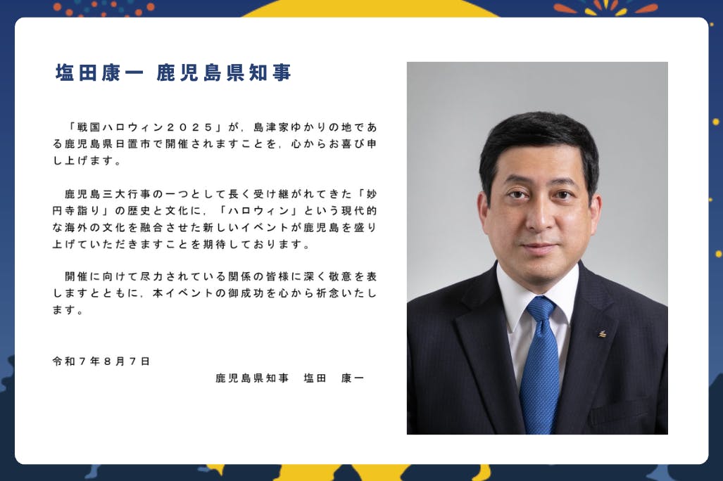 このたび、塩田康一 鹿児島県知事より戦国ハロウィンへの応援メッセージをいただきました!