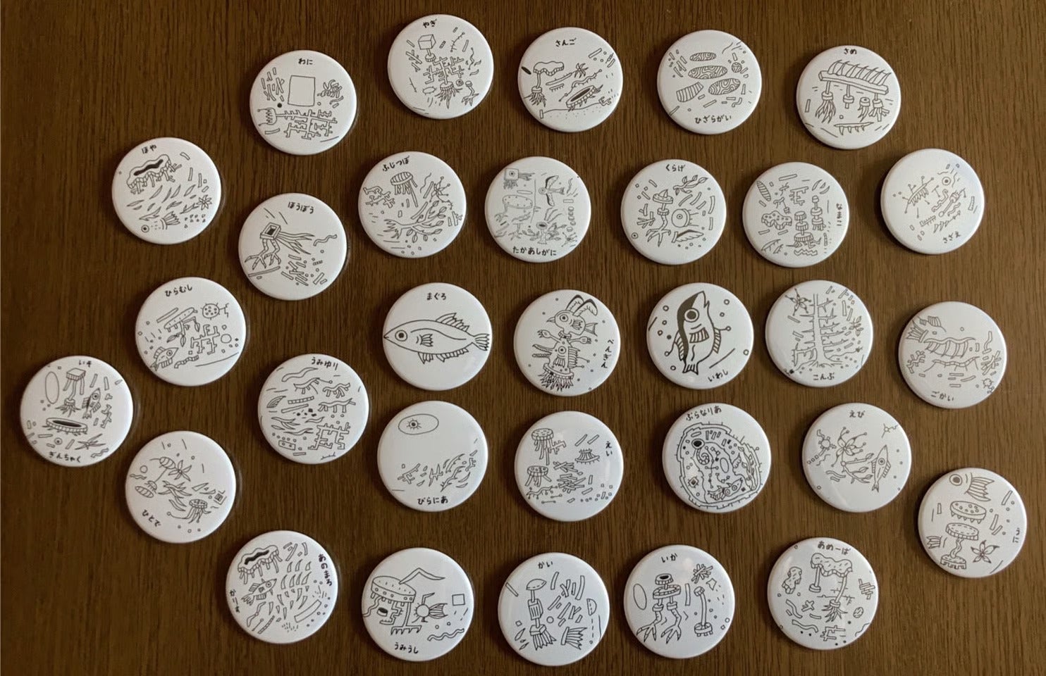 +小笠原鳥類さん画いきもの缶バッジ40種類(このキャプションをクリックするとバッジの一覧が見られます)