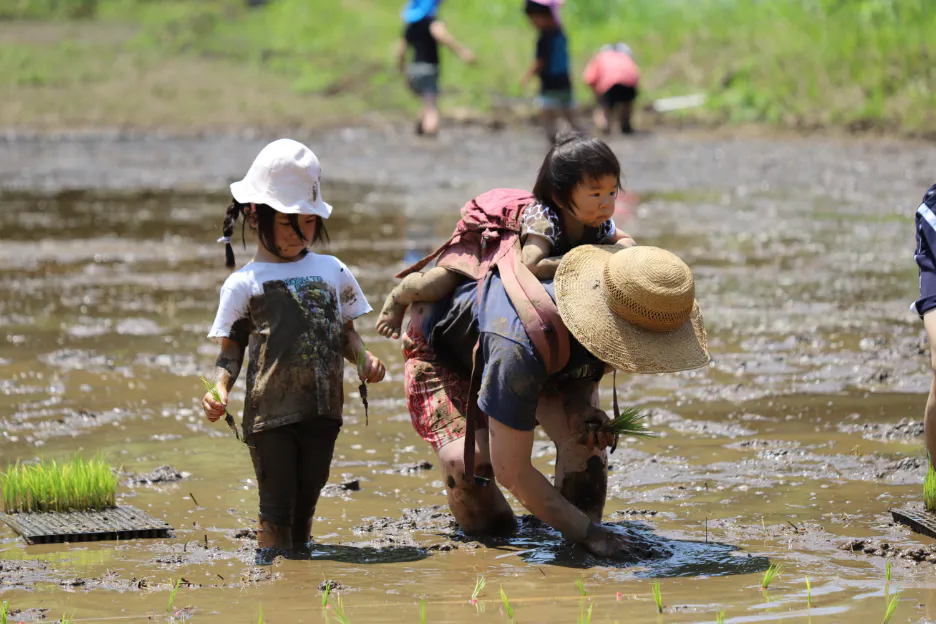 次に始めたのは「田植祭」。地元の音楽家と一緒に、伝統の田植え歌を歌いながら田植えをする——そんなユニークなお祭りに、たくさんの方が参加してくれました。