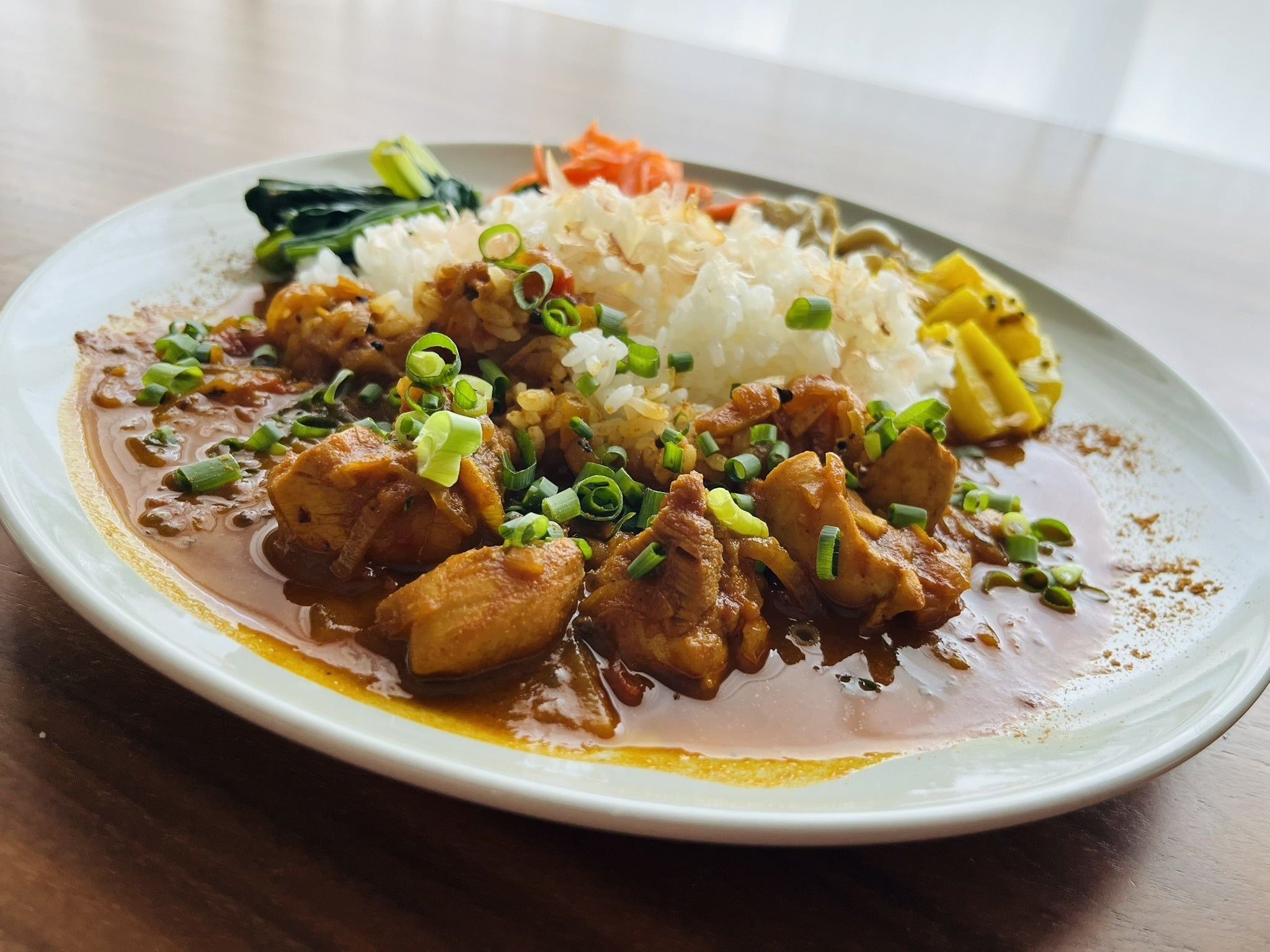 目指しているのは、“出汁の深みとスパイスの香りが調和する新しい日本のカレー”。鰹・昆布・煮干し・鶏・豚・野菜──日常に寄り添うおだしの旨味をベースに、スパイスの個性を少しずつ重ねていきます。
