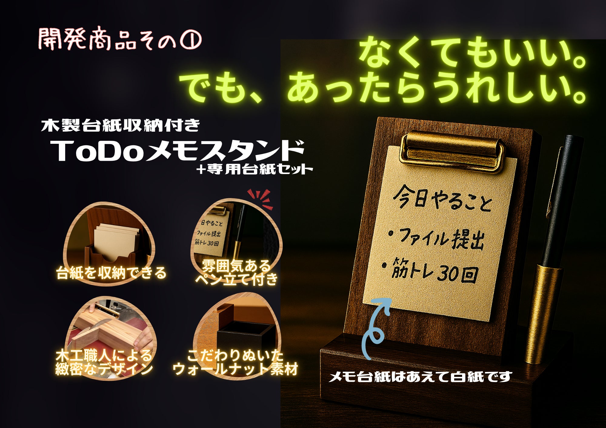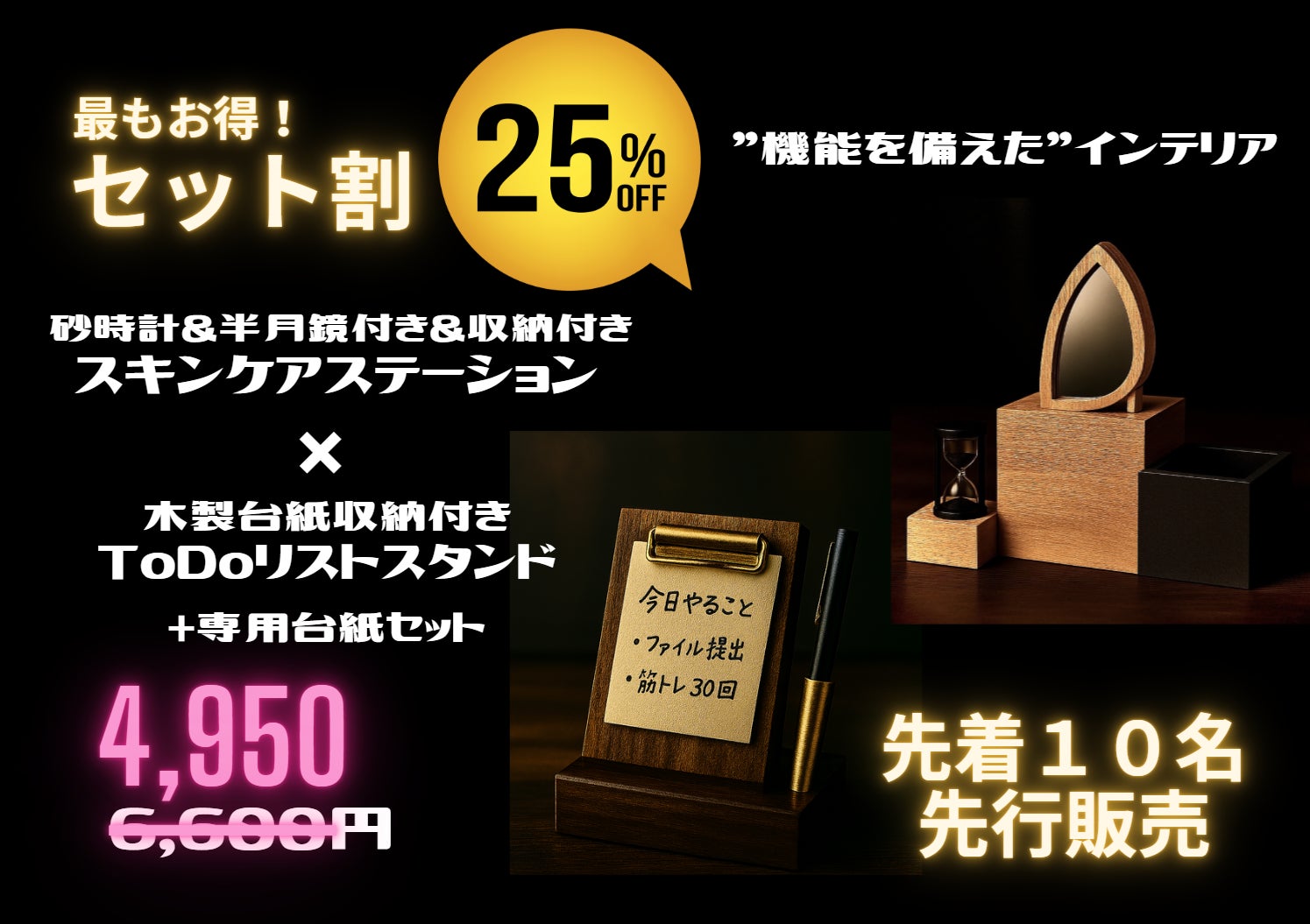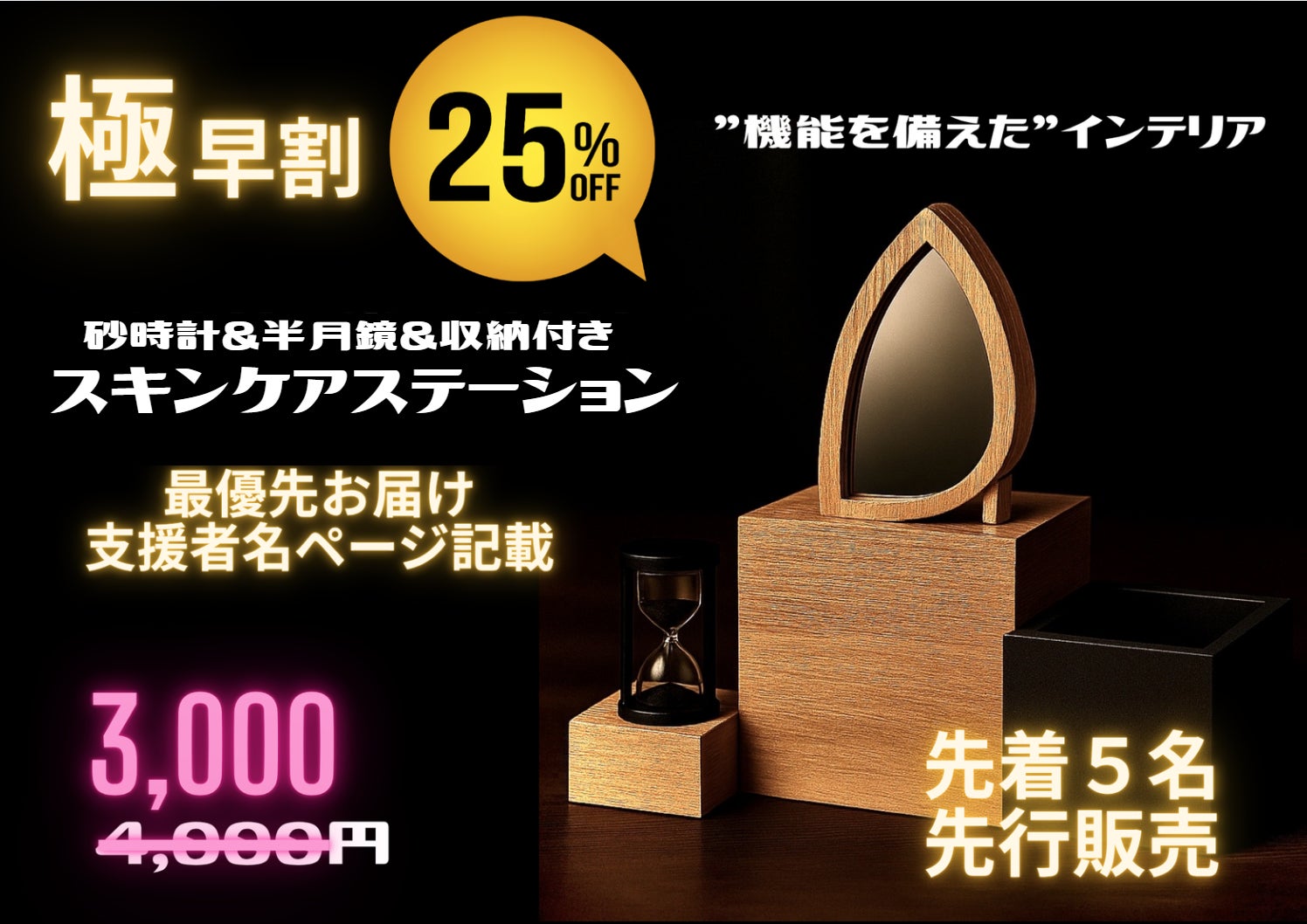 【自分の部屋が、自分のことが好きになる。】美容、勉強、お仕事、筋トレ、ダイエット…見えないところで頑張るあなたを、机の上から応援するデスクアイテムを届ける…そんなブランドを立ち上げます。本プロジェクトでは、最初の商品として、木製ToDoリストスタンドと砂時計つき化粧品収納をお届けします。