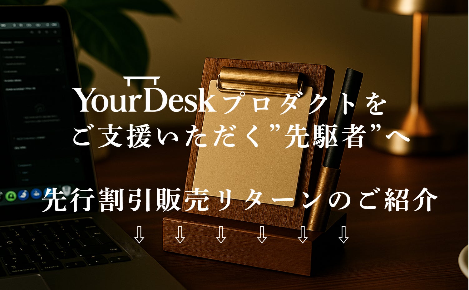 支援していただいた方のお名前をYourdesk公式HPに記載させていたくリターンもございます。ご希望の方は、支援時に備考欄にお名前をご記入ください 。