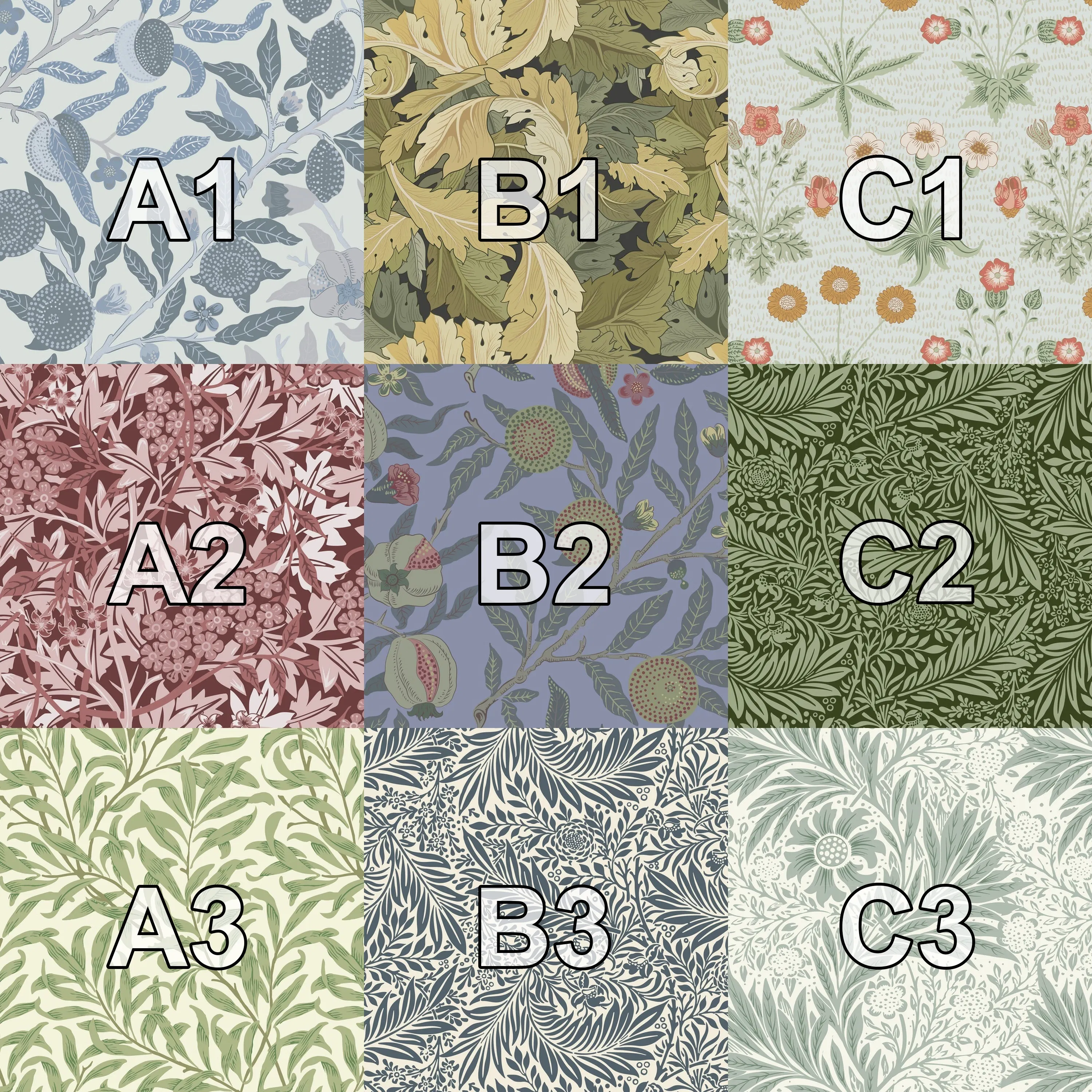 上のWilliam Morris の作品集から一つ柄を選んでいただけます。