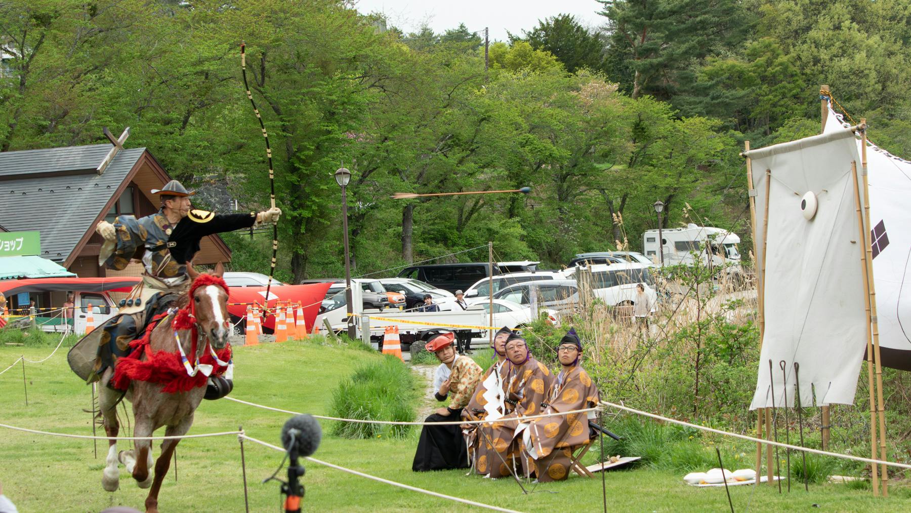 【写真説明】富士御室浅間神社流鏑馬神事(甲斐の勝山やぶさめ祭り)一の的から馬場本を望む