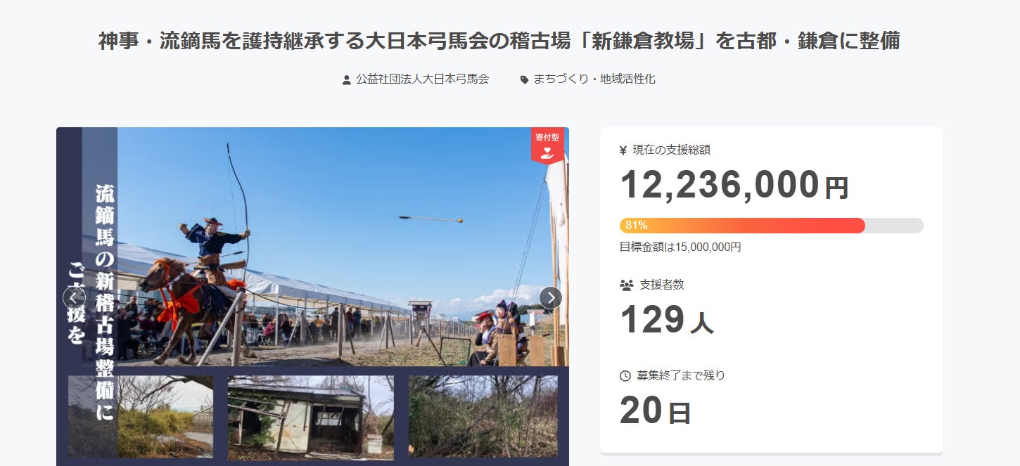 皆さまの温かいご支援もあり目標金額の81%の達成となっております。あと少し...ではございますが、まだ276万4000円と、道半ばでございます。