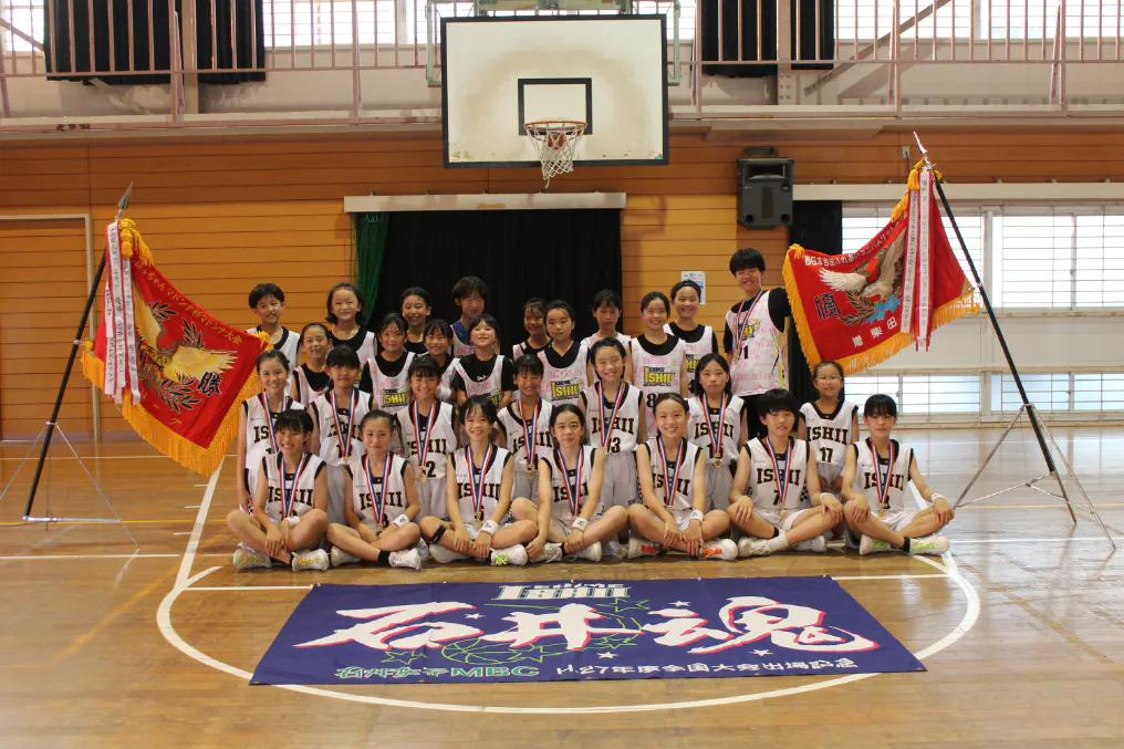 私たちは、「石井女子ミニバスケットボールクラブ」です。地域の子どもたちにスポーツを通じた健全な成長の場を提供することを目的に活動しています。日々の練習や大会を通じて、チームワークや責任感、そして勝利への努力を学ぶ場を提供しています。メンバーは1年生~6年生の28名で、バスケットボールを通じて友情を深め、共に成長していくことを楽しんでいます。
