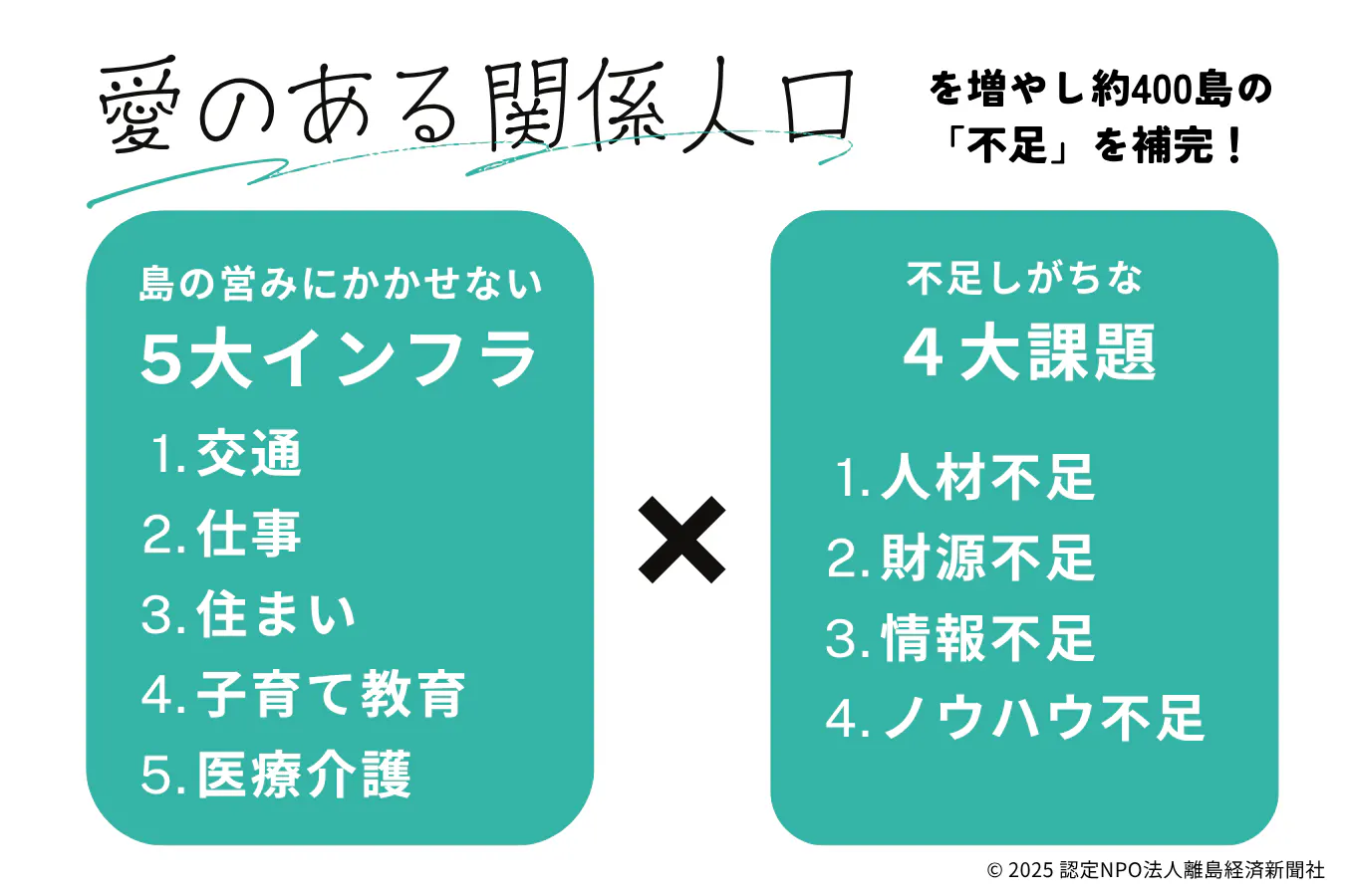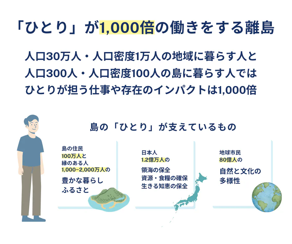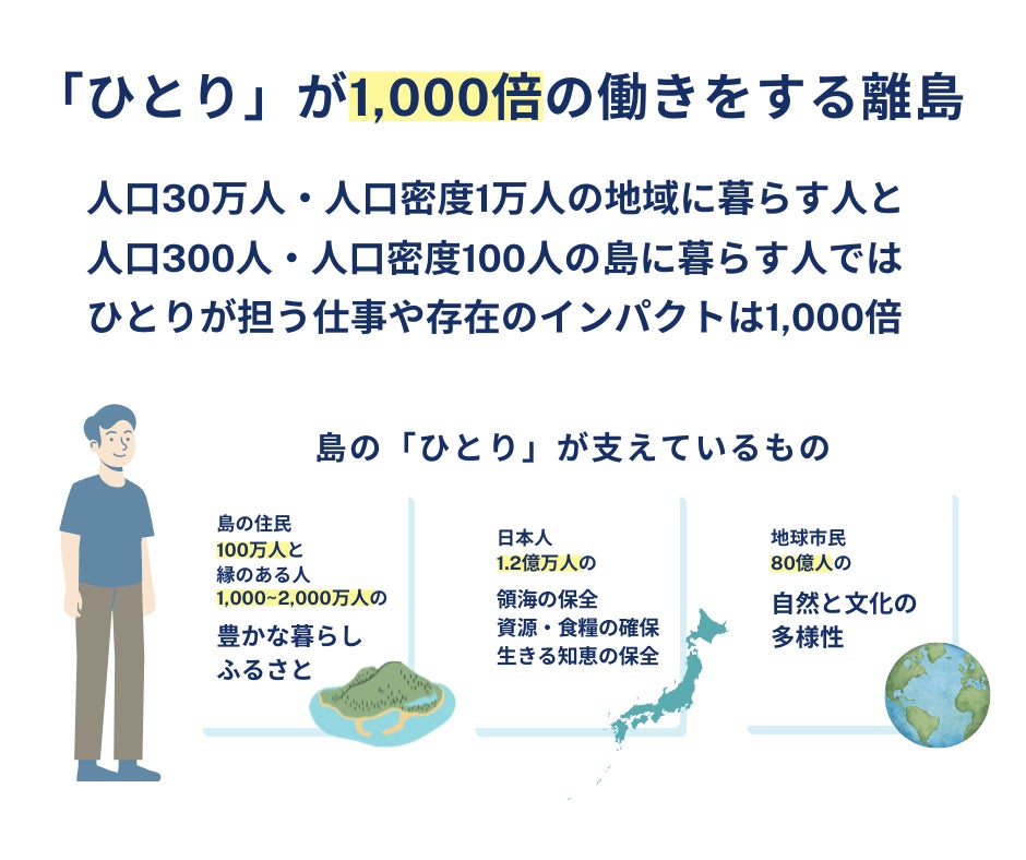 100万人弱が暮らす日本の島々に、愛のある関係人口をプラス100万人増やすことです。