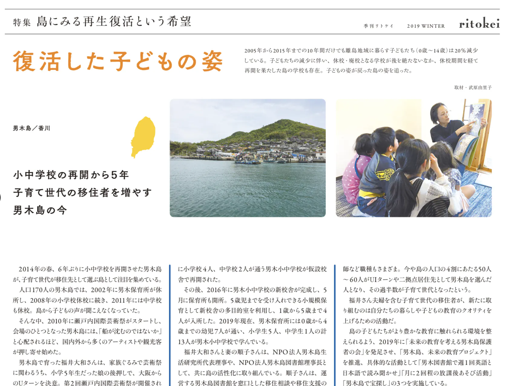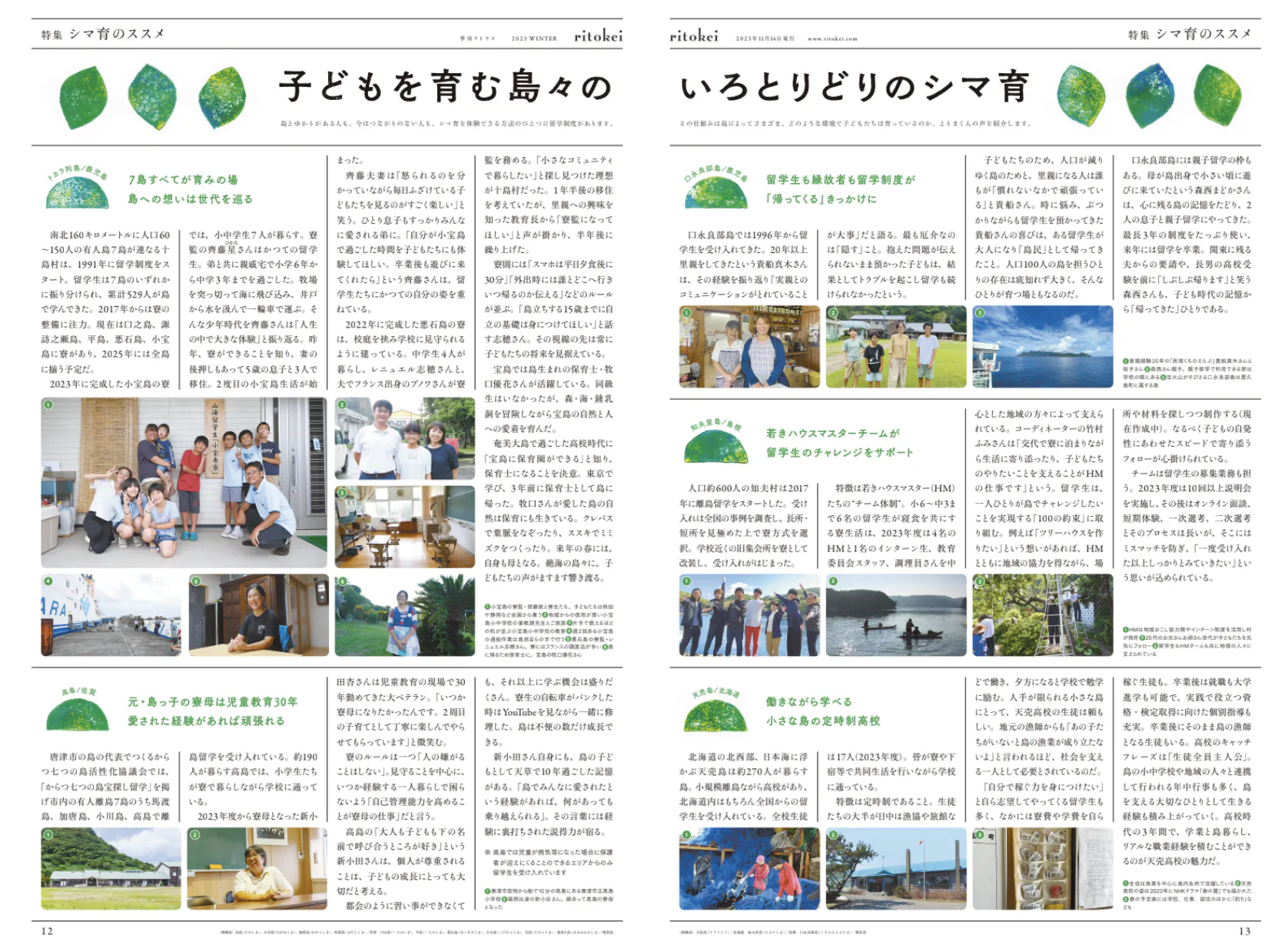 2012年に発行した『季刊ritokei』3号に登場した島の子どもたち。当時、「これからもずっと島に住み続けたい」と願った子どもたちの夢も、「愛のある関係人口」が増えることで叶えられていくのです