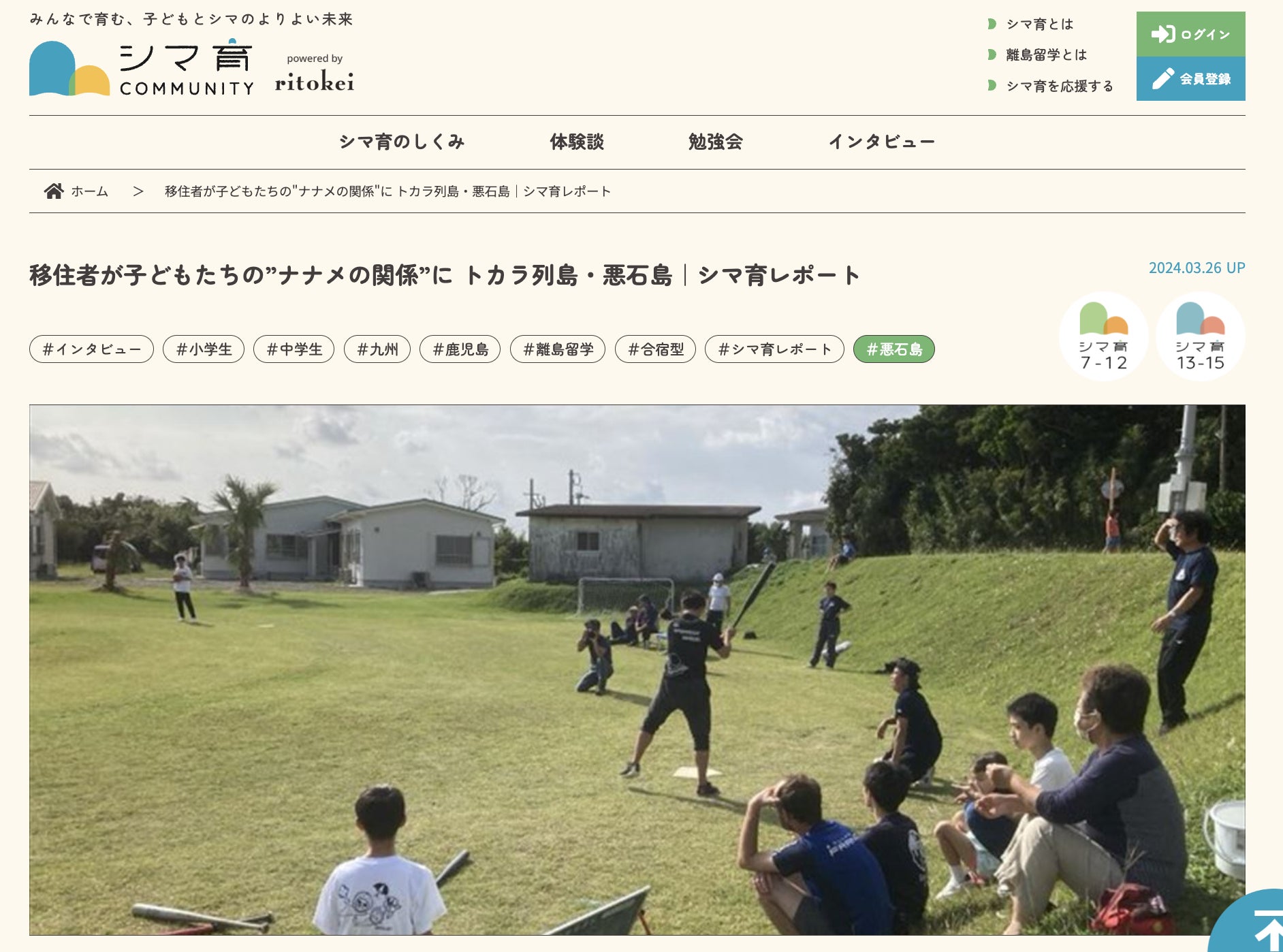 ウェブの『ritokei.com』、島と親子をつなぐ『シマ育コミュニティ』、