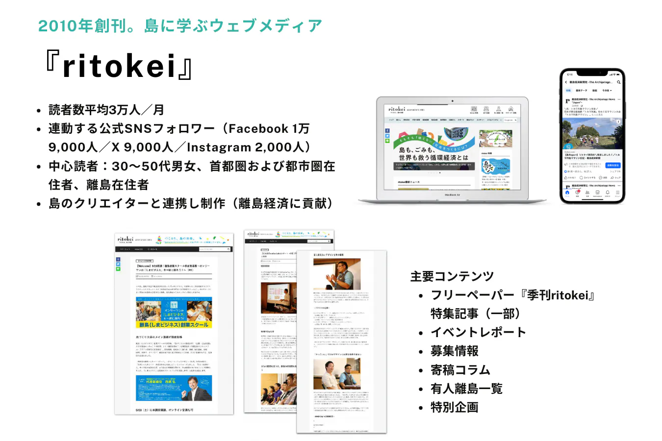 フリーペーパー版の『季刊ritokei』とウェブ版『ritokei.com』を活用し、