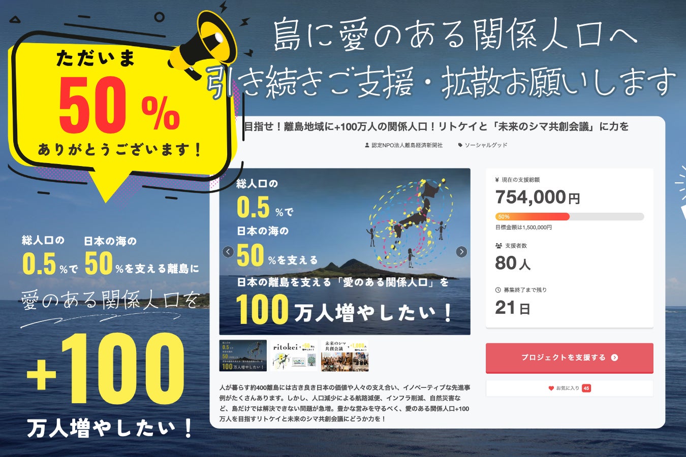 目標まで、あと半分。ぜひ、力を貸してください。