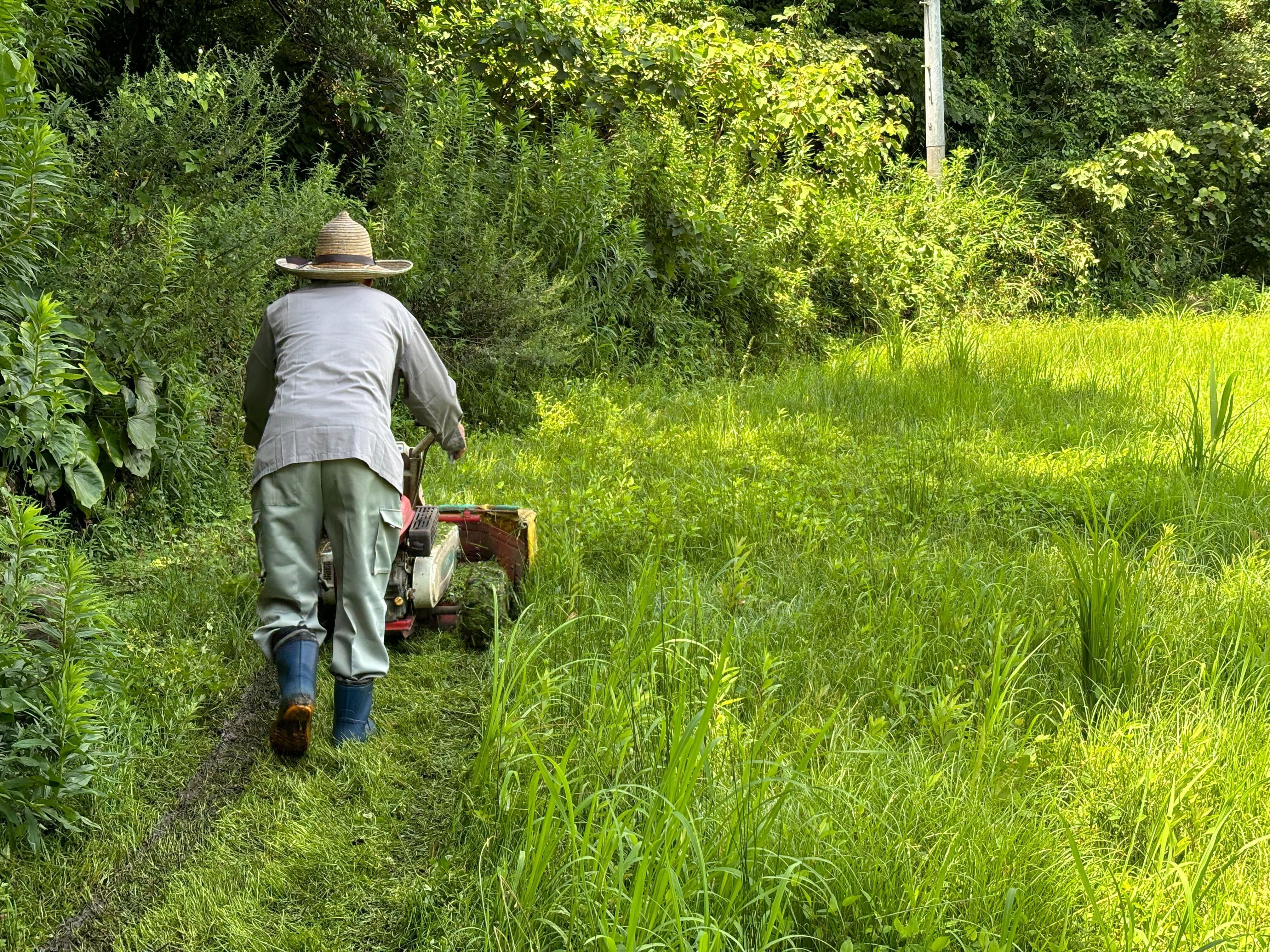 97歳の祖父は、島にいる時はまるで若返ったかのように生き生きと、草を刈り、家を直し、農機具を修理します。