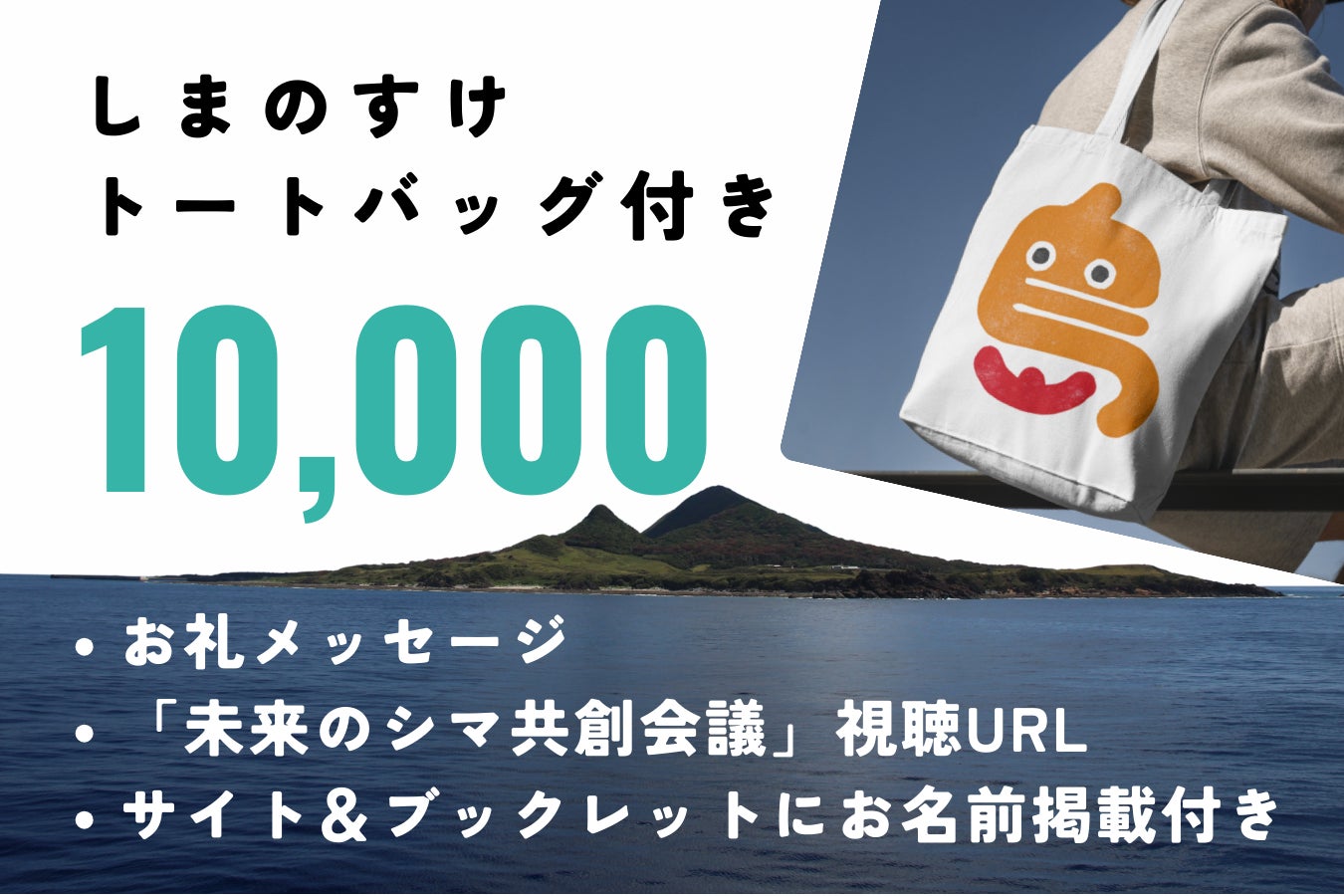 気になる島顔「しまのすけ」のトートバッグ(非売品)付きリターン。