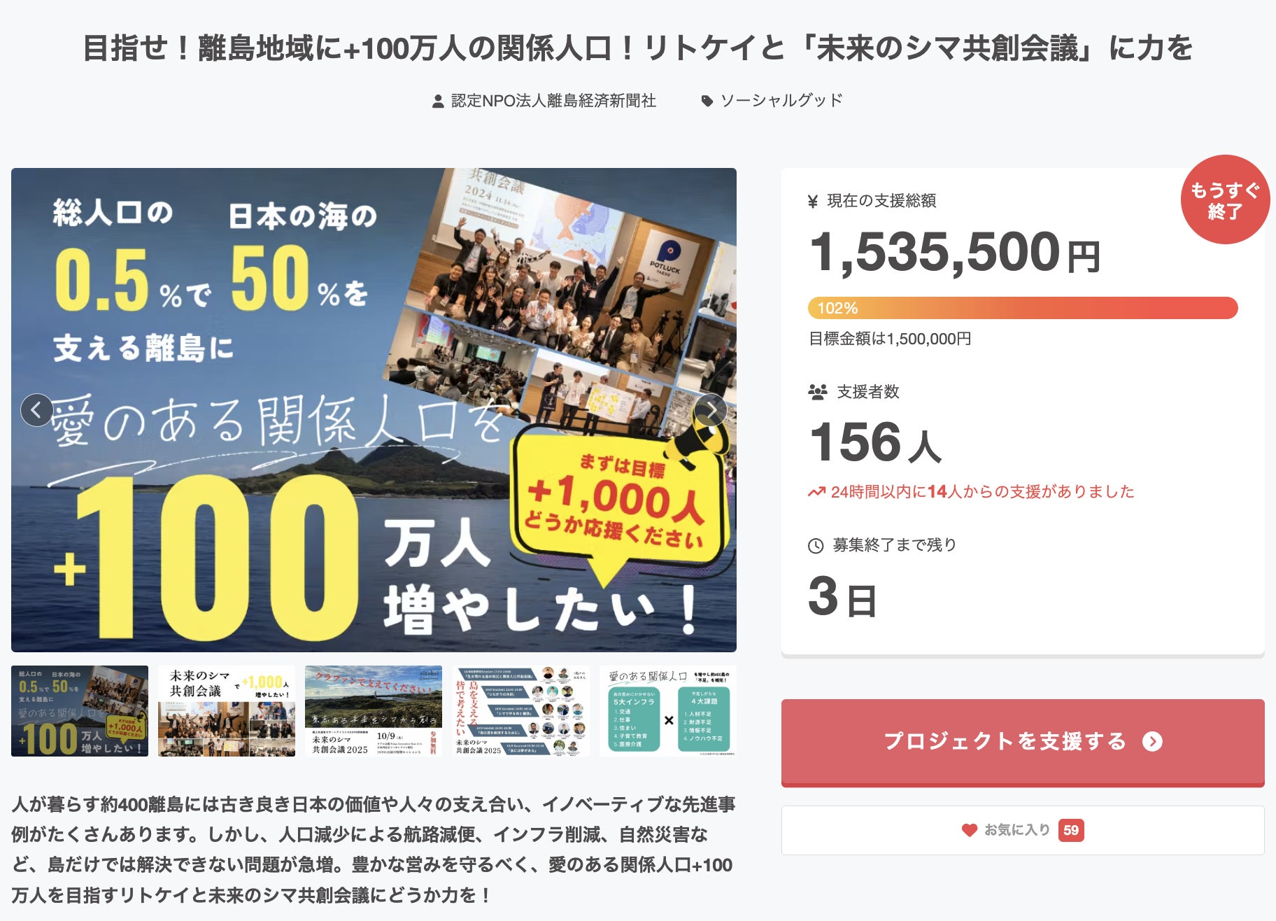 ネクストゴールを250万円に設定させていただき、「未来のシマ共創会議」成功のために残りの期間も挑戦を続けたいと思います。