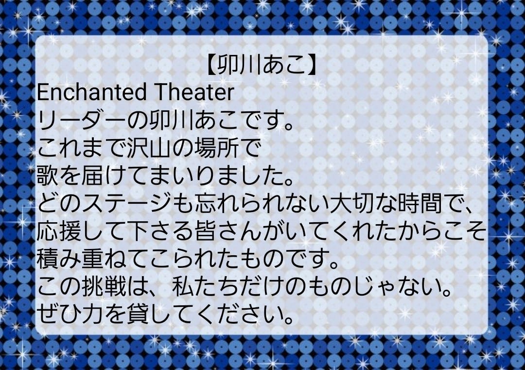 私たち【Enchanted Theater】は来年2月に単独公演を成功させることを目指しています。