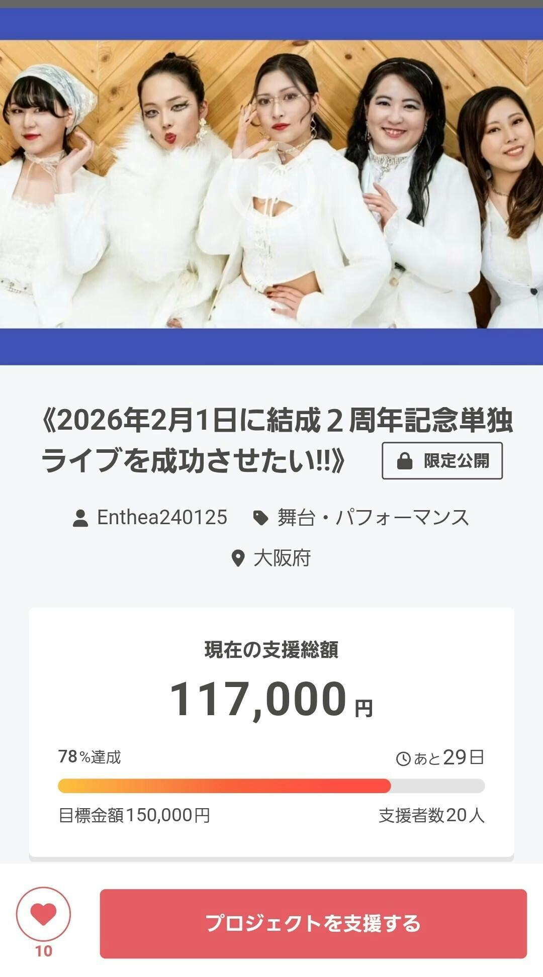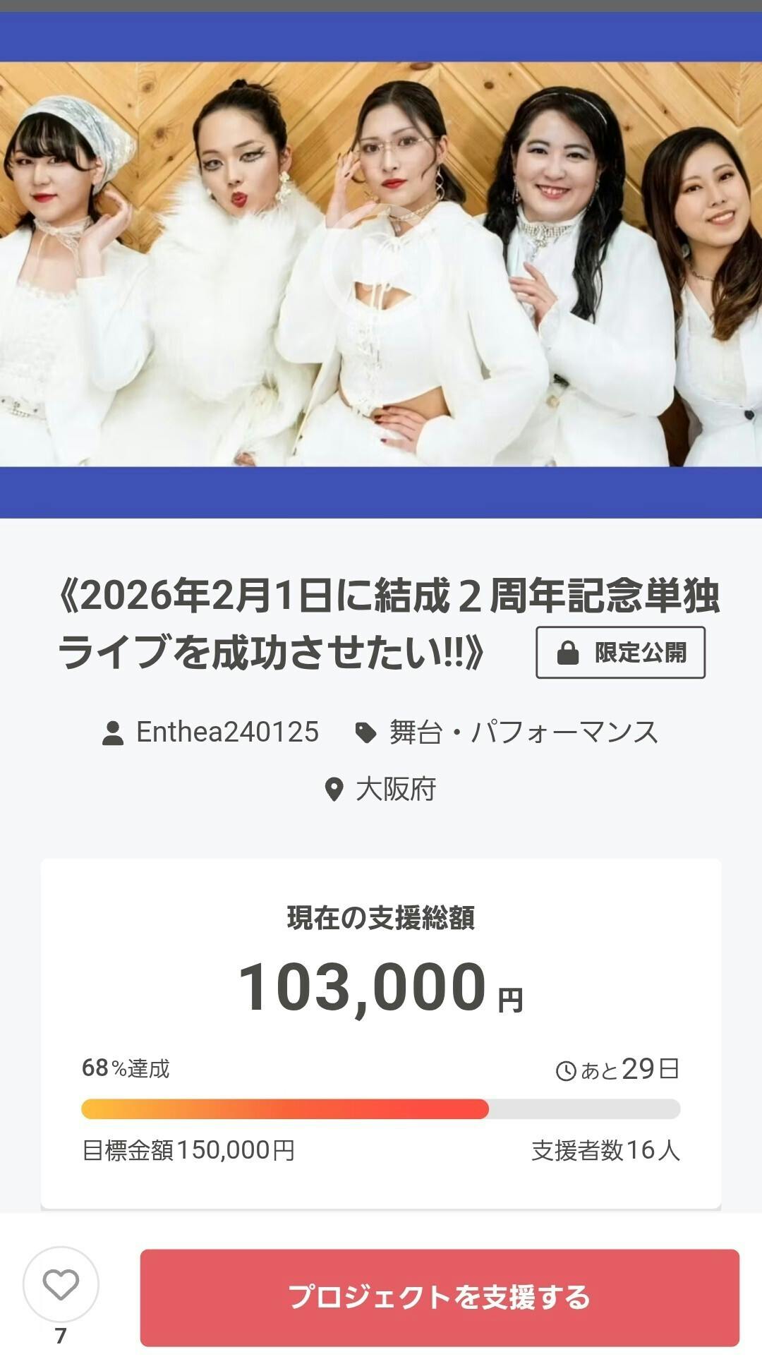 ご支援下さった皆様、本当に本当にありがとうございます!!!!本日中に100%になる兆しがみえてまいりました。皆様がエンシアを信じて一緒に走って下さっているお気持ちを受け止め、必ず皆様が幸せになるようなステージを作り上げます!!!引き続きご支援宜しくお願い致します。