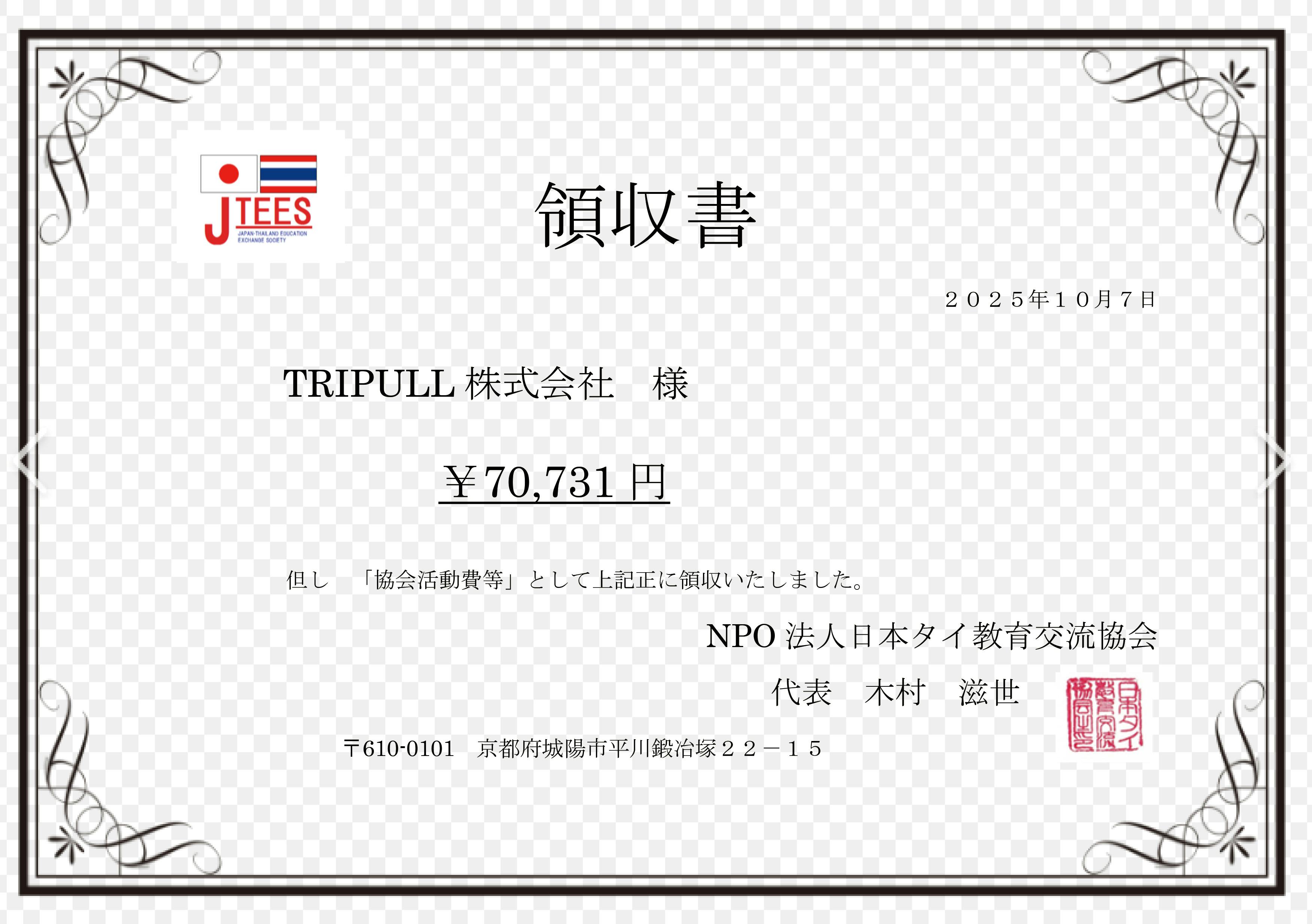 あわせて、日本タイ教育交流協会から発行された領収書を添付しております。