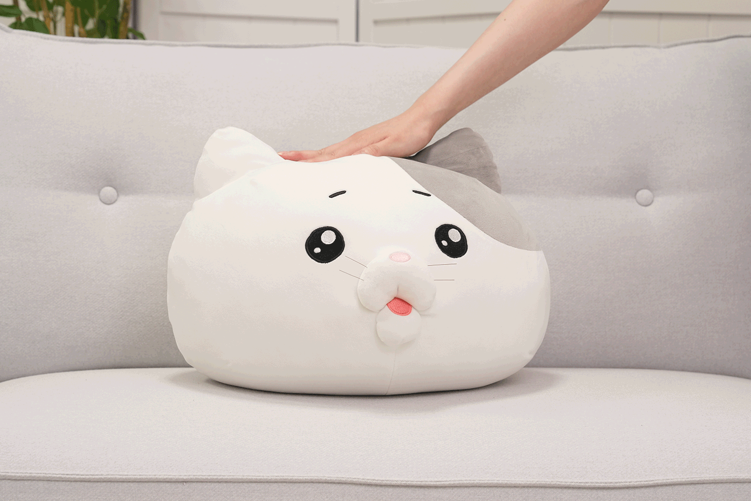 ▲ もちもちクッションになったやさしい猫のポンちゃん!