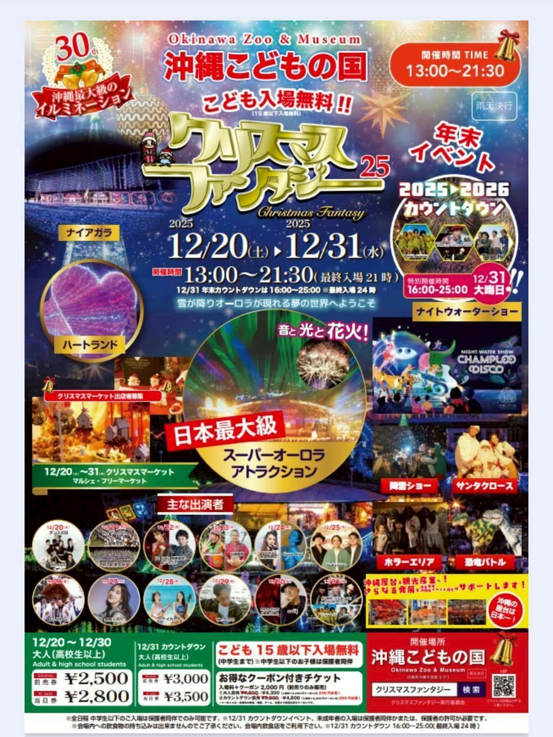 【12/31(水)沖縄こどもの国・年末カウントダウンに、Ayapanda&なかきすRAINBOWが登場します!】