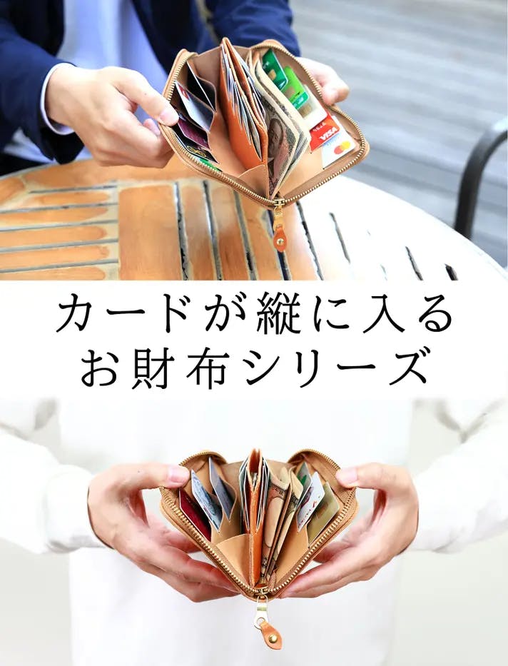 そんな悩みを解決すべく生まれたお財布が「カードが縦に入るシリーズ」です。カード収納に特化したお財布です。