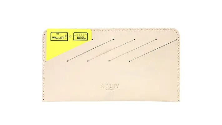 このスリットはAGILITYの人気革小物「カードフォルダー」をベースにデザインしています。