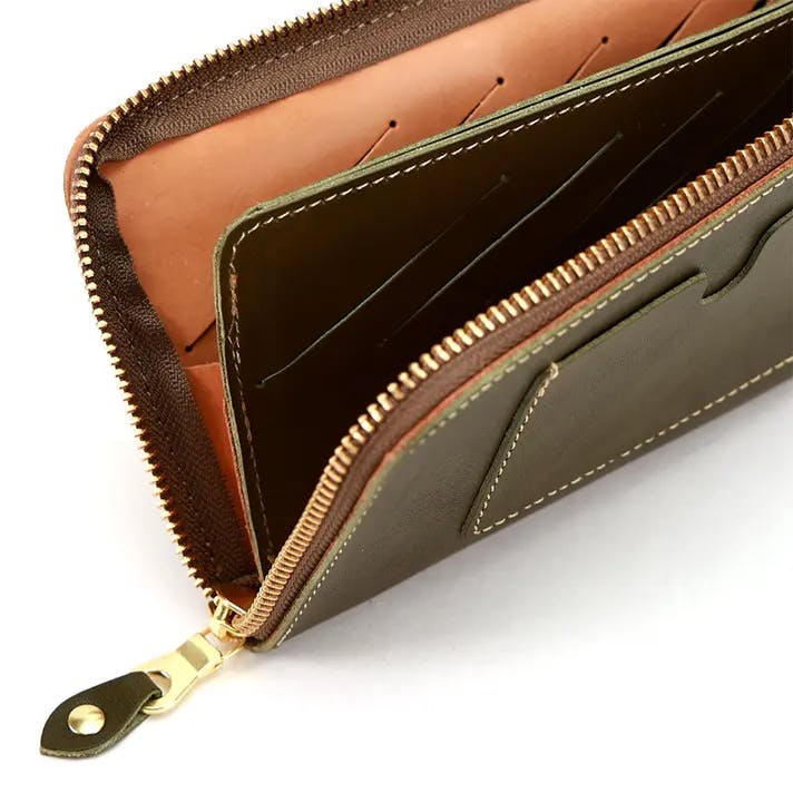 一般的な長財布は、上からしかお札が取り出せませんが、マチを外す事により横からもお札を取り出す事が出来ます。