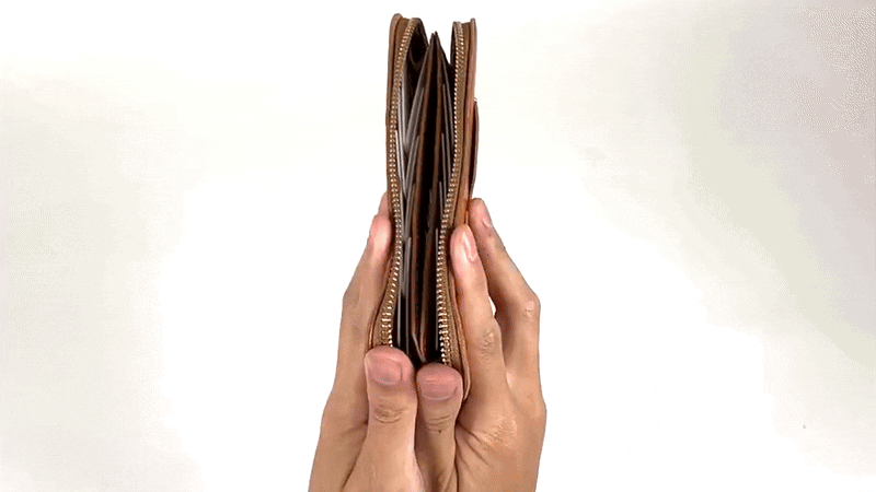 数ミリの差ですが、ファスナー分の厚みが減るので財布を閉じた際スリムに持ち歩けます。